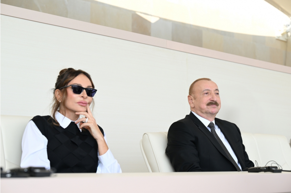 “İki sahil” xəbər verir ki, Azərbaycan Respublikasının Prezidenti İlham Əliyev, birinci xanım Mehriban Əliyeva, Türkiyə Respublikasının Prezidenti Rəcəb Tayyib Ərdoğan, Pakistan İslam Respublikasının Baş naziri Məhəmməd Şahbaz Şərif paradda iştirak ediblər.