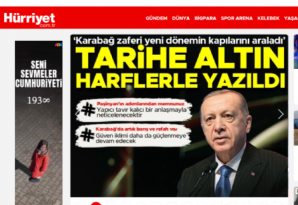 Türkiyənin və Şimali Kipr Türk Cümhuriyyətinin aparıcı informasiya agentlikləri, televiziya kanalları, qəzetləri və xəbər portalları Vətən müharibəsində Qələbənin beşinci ildönümünə həsr olunmuş Hərbi paradla bağlı mövzunu geniş işıqlandırıblar.