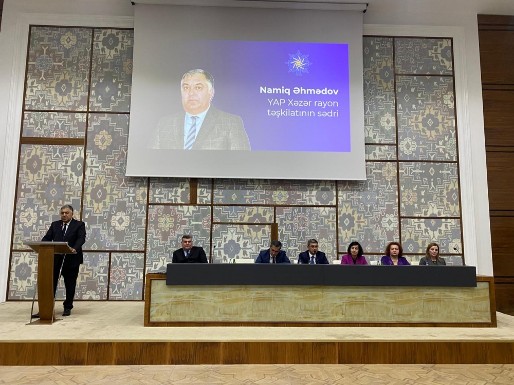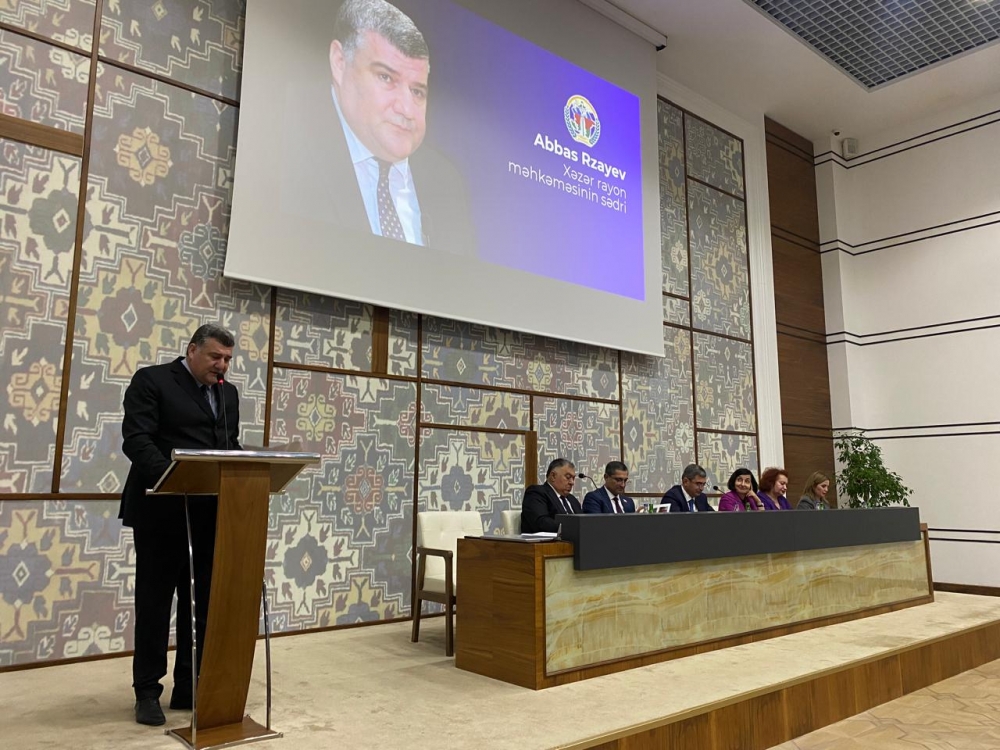 Xəzər rayonunda “Konstitusiya və Suverenlik İli” çərçivəsində 12 noyabr Konstitusiya Gününə həsr olunmuş “Konstitusiya – Müstəqilliyimizin və Suverenliyimizin Zəmanətidir” mövzusunda tədbir keçirilib. Rayon İcra Hakimiyyətinin təşkilatçılığı ilə “Şimal” Elektrik Stansiyasının inzibati binasında keçirilən tədbirdə Xəzər RİH-nin başçısı Elşən Salahov, RİH başçısının müavinləri və Aparatın əməkdaşları, Milli Məclisin deputatları Soltan Məmmədov və Gülşən Paşayeva, Bakı Dövlət Universitenin kafedra müdiri, tarix elmləri doktoru, professor İradə Hüseynova, Mətbuat Şurasının İdarə Heyətinin üzvü, politoloq Yeganə Hacıyeva, YAP Xəzər rayon təşkilatının sədri Namiq Əhmədov, Xəzər rayon məhkəməsinin sədri Abbas Rzayev, qəsəbə inzibati ərazi dairələri üzrə nümayəndələri, bələdiyyə sədrləri, rayonun idarə-təşkilat, təhsil və səhiyyə müəssisələrinin rəhbərləri iştirak edib.
