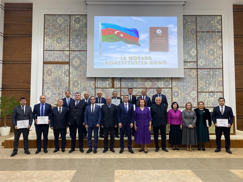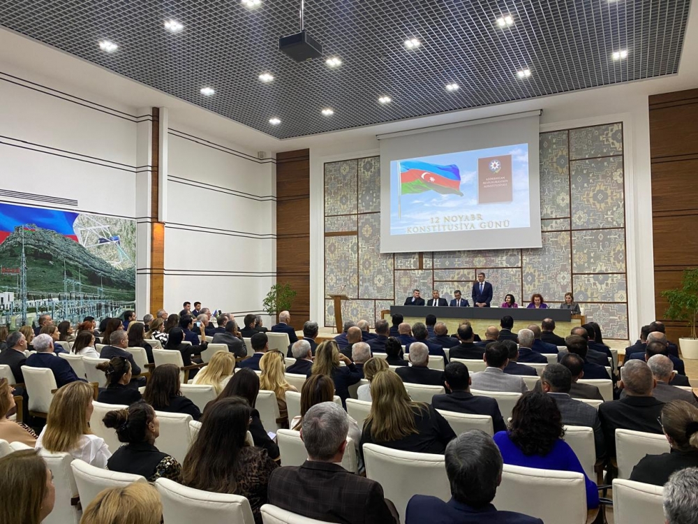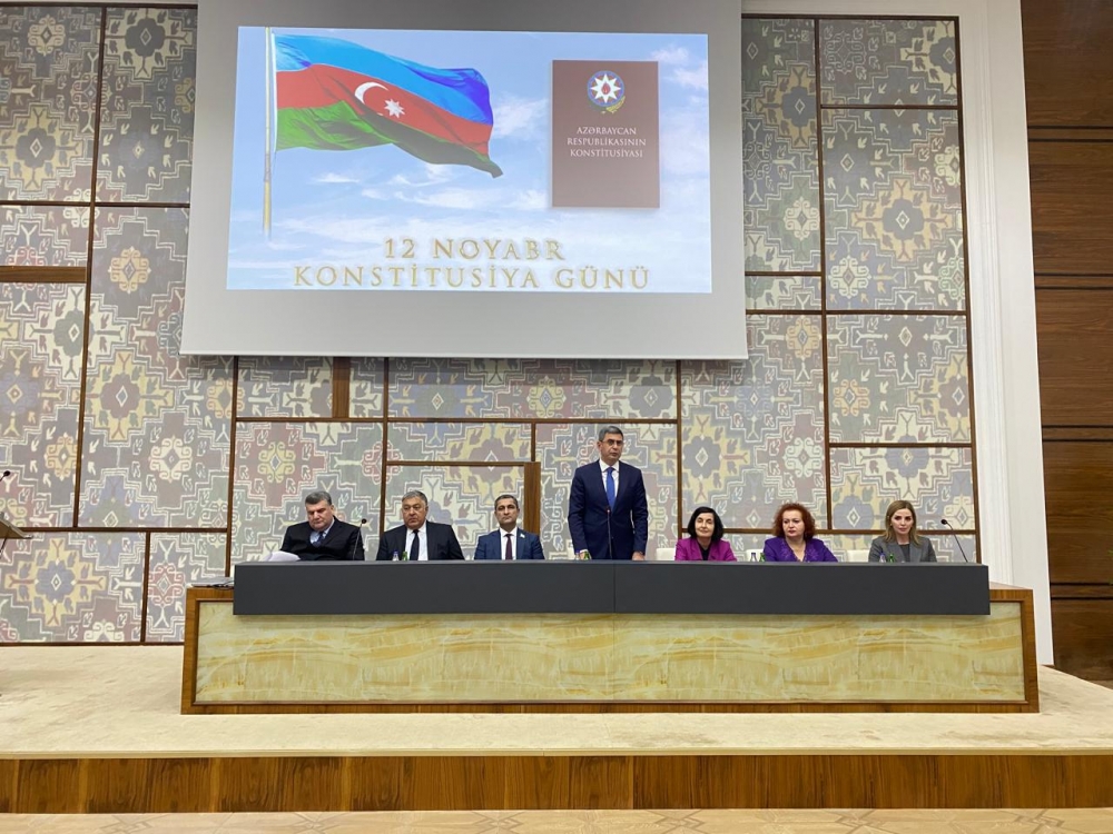 Daha sonra tədbirin rəsmi hissəsinə keçid edilərək Dövlət Himni səsləndirilib və Ulu öndər Heydər Əliyevin və vətənimizin ərazi bütövlüyü uğrunda canlarından keçən şəhidlərimizin əziz xatirəsi bir dəqiqəlik sükutla yad edilib. Sonra tədbirdə Konstitusiya Gününə həsr olunmuş qısa videoçarx nümayiş etdirilib.