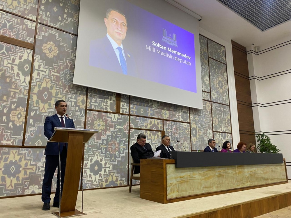 Tədbirdə giriş sözü ilə çıxış edən Rayon İcra Hakimiyyətinin başçısı Elşən Salahov Prezidenti İlham Əliyevin 2025-ci ilin “Konstitusiya və Suverenlik İli” elan olunması ilə bağlı Sərəncamının hüquqi dövlətçilik və suverenlik dəyərlərinin möhkəmləndirilməsi baxımından əhəmiyyətindən danışıb, ərazi bütövlüyümüzün, dövlət suverenliyinin və ölkənin bütün ərazilərində Azərbaycan Konstitusiyasının hüquqi qüvvəsinin bərpasını tarixdə qazanılan ən parlaq Zəfər kimi səciyyələndirib. Bugünkü qüdrətli Azərbaycanın Ulu Öndər Heydər Əliyevin ideyaları əsasında, ölkə prezidenti cənab İlham Əliyevin müdrik rəhbərliyi ilə inamla inkişaf etdiyini, qısa müddətdə əsrə bərabər inkişaf yolu keçən müstəqil respublikamızın daha güclü dayaqlara malik olan və milli maraqları qətiyyətlə qoruyan qüdrətli dövlətə çevrildiyini qeyd edib.
