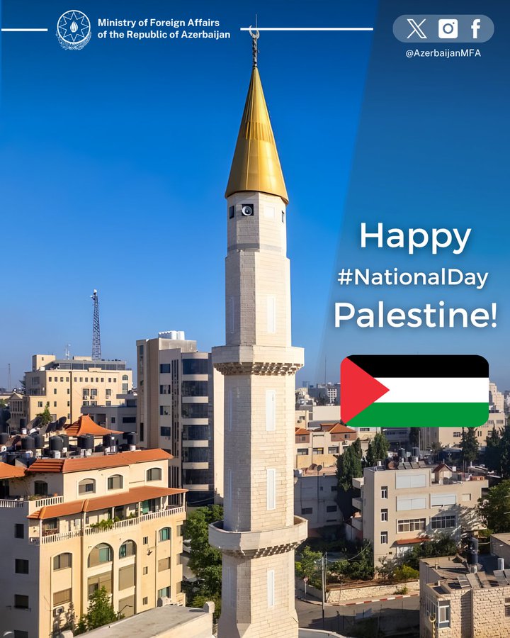 Azərbaycan Xarici İşlər Nazirliyi Fələstin xalqını və hökumətini Milli Gün münasibətilə təbrik edib.