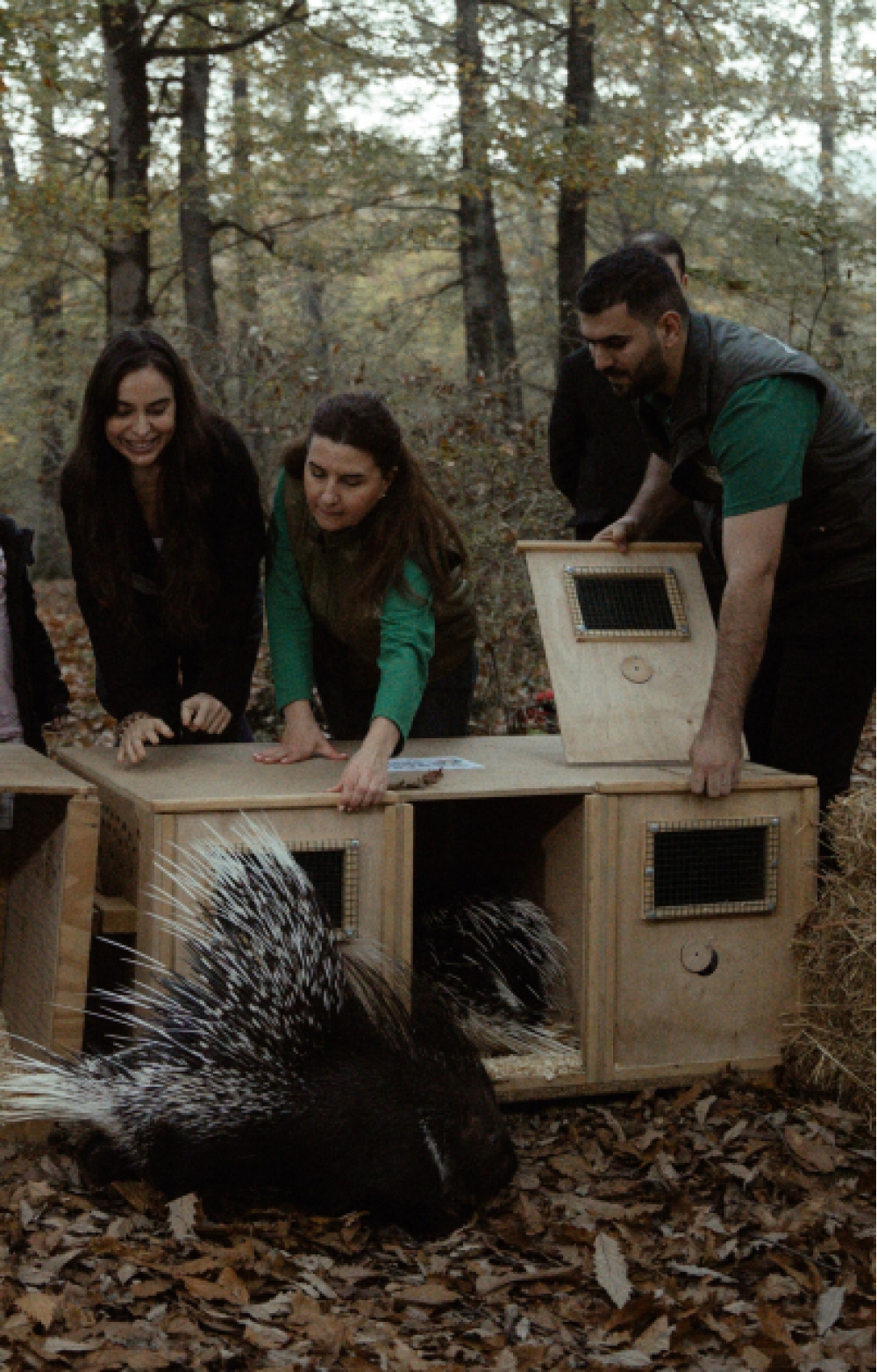 Daha sonra Hirkan Milli Parkının ərazisinə biomüxtəlifliyin zənginləşdirilməsi məqsədilə heyvanların təbiətə buraxılması aksiyası təşkil olunub. Aksiya çərçivəsində 2 yenot, 2 tülkü və 4 tirəndaz təbii mühitə buraxılıb. Yenotlar bir müddət əvvəl IDEA İctimai Birliyinin təşəbbüsü və aidiyyəti qurumların iştirakı ilə aparılan birgə yoxlama nəticəsində iaşə obyektlərində qanunsuz saxlanılması aşkarlanmış və xilas edilmişdilər. Həmin yenotlar 4 ay müddətində Bakı Zooloji Parkında müalicə və reabilitasiya olunaraq tam sağaldıqdan sonra təbiətə qaytarılıb.