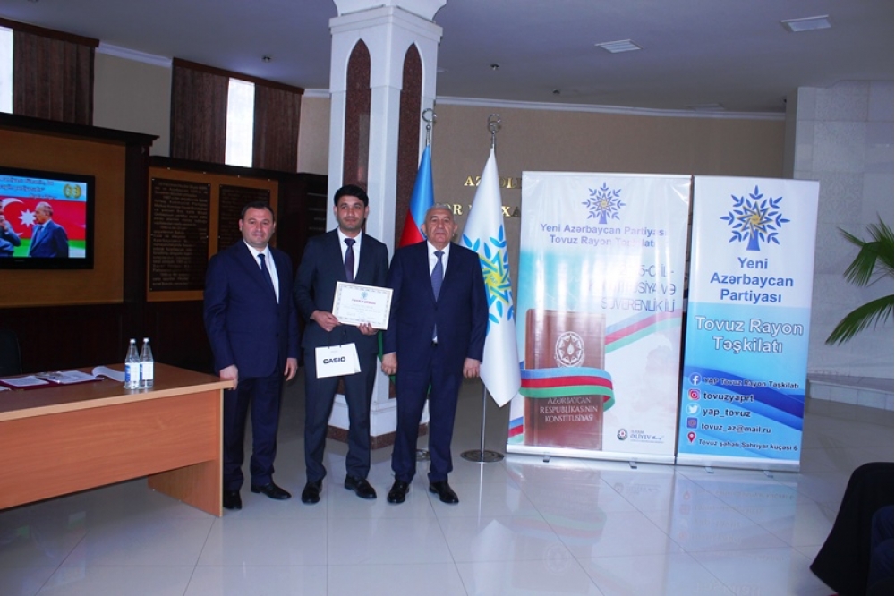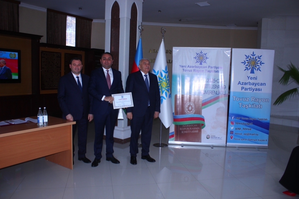Tədbirdə çıxış edən YAP Tovuz rayon təşkilatının sədri Nihad Pənahov Yeni Azərbaycan Partiyasının yaranmasının növbəti ildönümü münasibətilə iştirakçıları səmimi-qəlbdən təbrik edib və partiyanın keçdiyi inkişaf yolunun Azərbaycan dövlətçiliyi üçün mühüm əhəmiyyət daşıdığını vurğulayıb.
