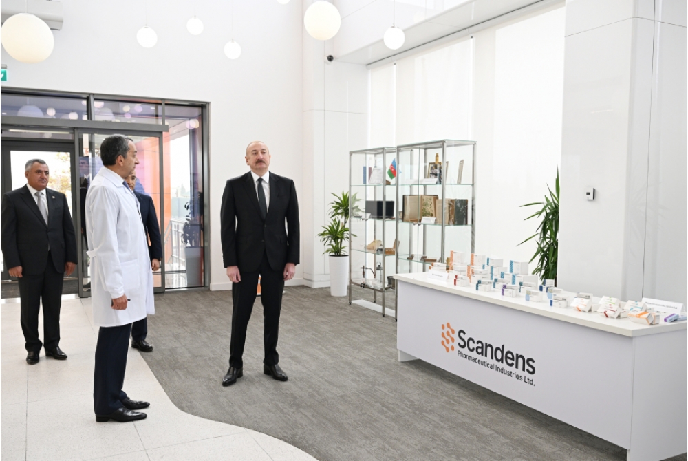 Azərbaycan Respublikasının Prezidenti İlham Əliyev Abşeron rayonunun Hökməli qəsəbəsində “Scandens Pharmaceutical Industries Ltd” MMC-nin dərman preparatları istehsalı müəssisəsinin açılışında iştirak edib.