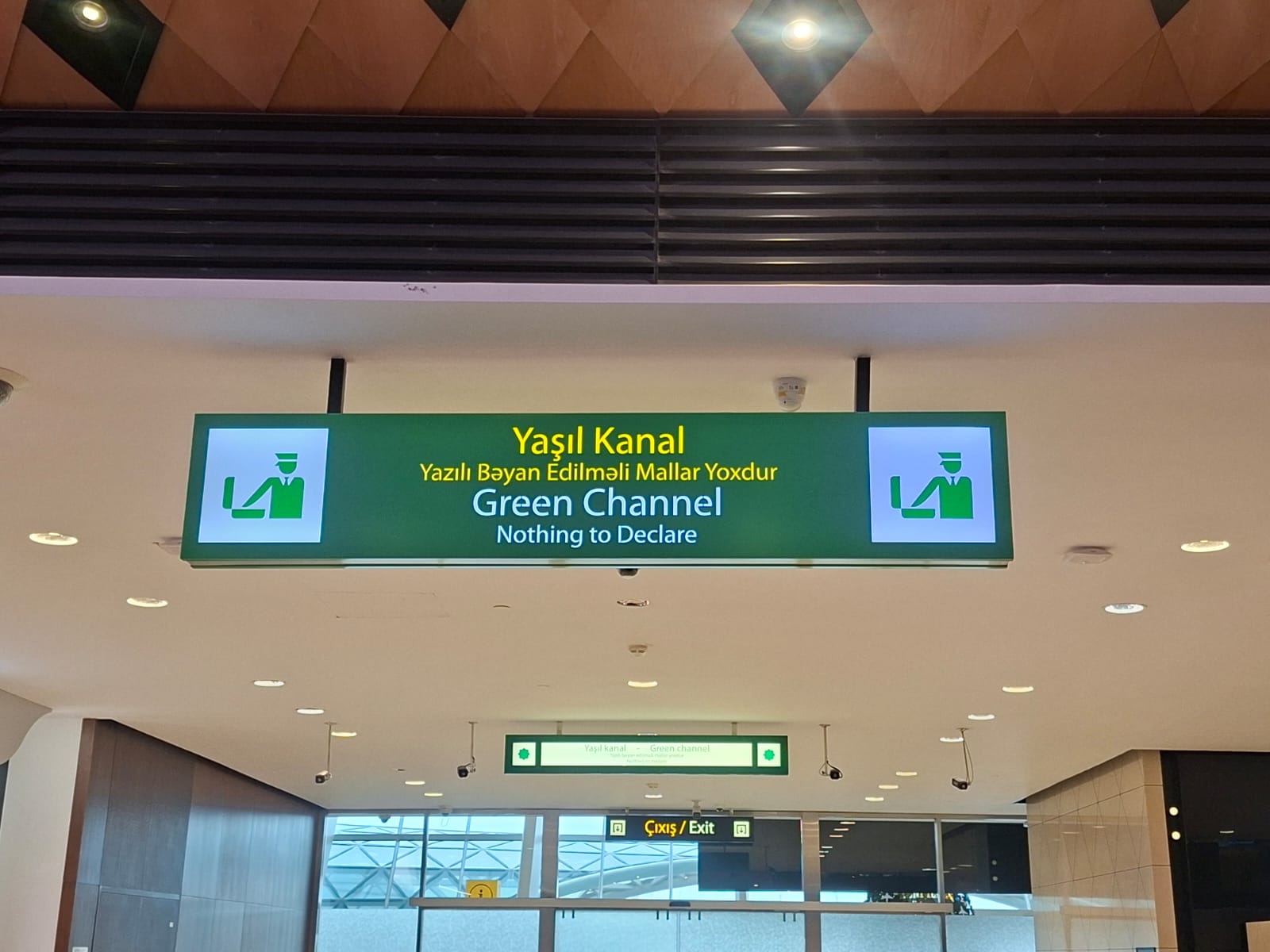 Hava Nəqliyyatında Baş Gömrük İdarəsinin Sərnişin şöbəsinin böyük inspektoru, gömrük xidməti kapitanı Xatirə Məmmədova jurnalistlərə məlumat verdi ki, ixtisaslaşdırılmış sərhəd-keçid məntəqələrində gömrük nəzarətindən keçirilən malların bəyan edilməsinin sürətli və sadələşdirilmiş qaydasından istifadə edilməsi üçün "Yaşıl kanal" və "Qırmızı kanal" buraxılış sistemləri tətbiq olunur: “Yaşıl kanal”da malların şifahi şəkildə bəyan edilməsi üçün nəzərdə tutulur. Bu kanala daxil olan vətəndaşın əl yükündə və müşahidə olunan baqajında gömrük orqanına yazılı şəkildə bəyan ediləsi mal olmadığı anlamına gəlir.