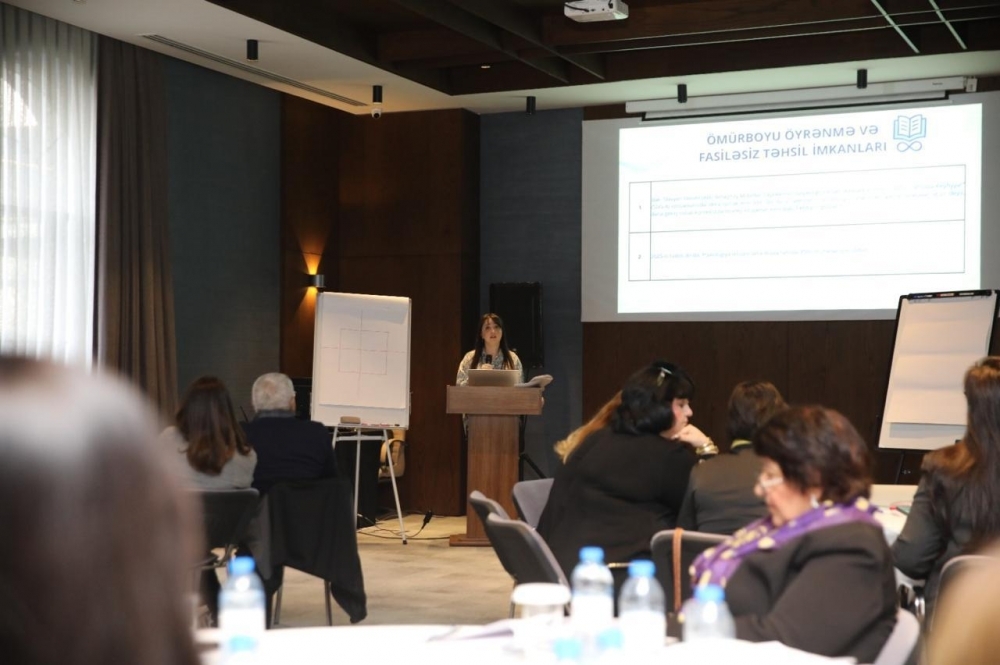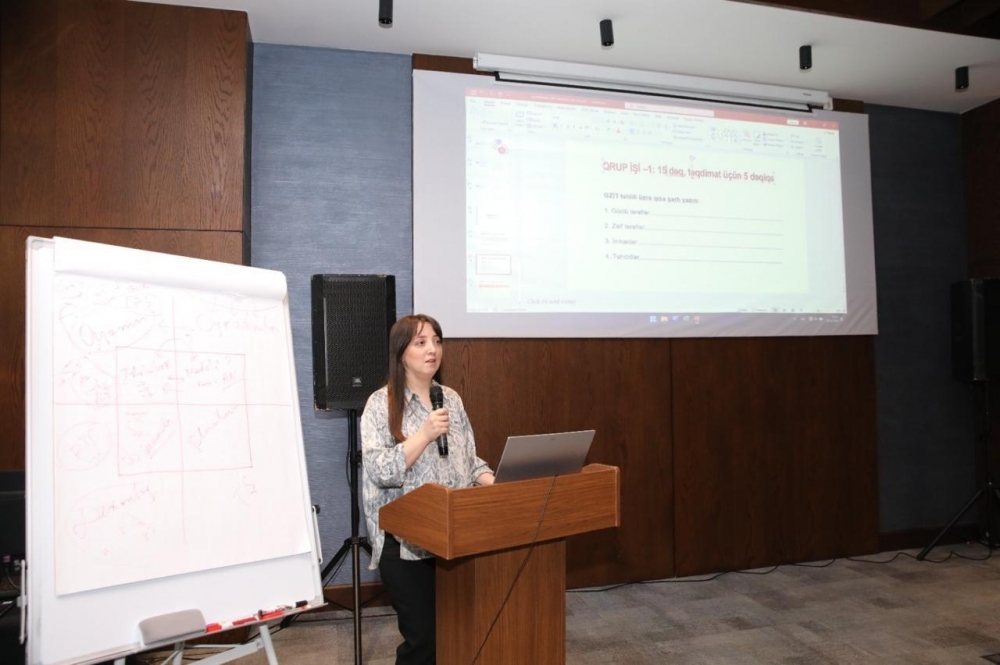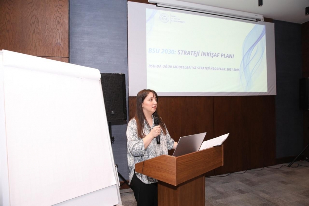 BSU-nun Tədris departamentinin direktoru Zümrüd Yolçuyeva SİP-dən irəli gələn səriştəəsaslı təhsil proqramların formalaşması və innovasiya ekosistemi sistemi ilə bağlı məlumat verib. Z.Yolçuyeva BSU-nun SİP çərçivəsində əldə olunan nəticələr barədə danışaraq keyfiyyət mədəniyyəti, eləcə də ömürboyu öyrənmə istiqamətində mühüm işlərin görüldüyünü qeyd edib.