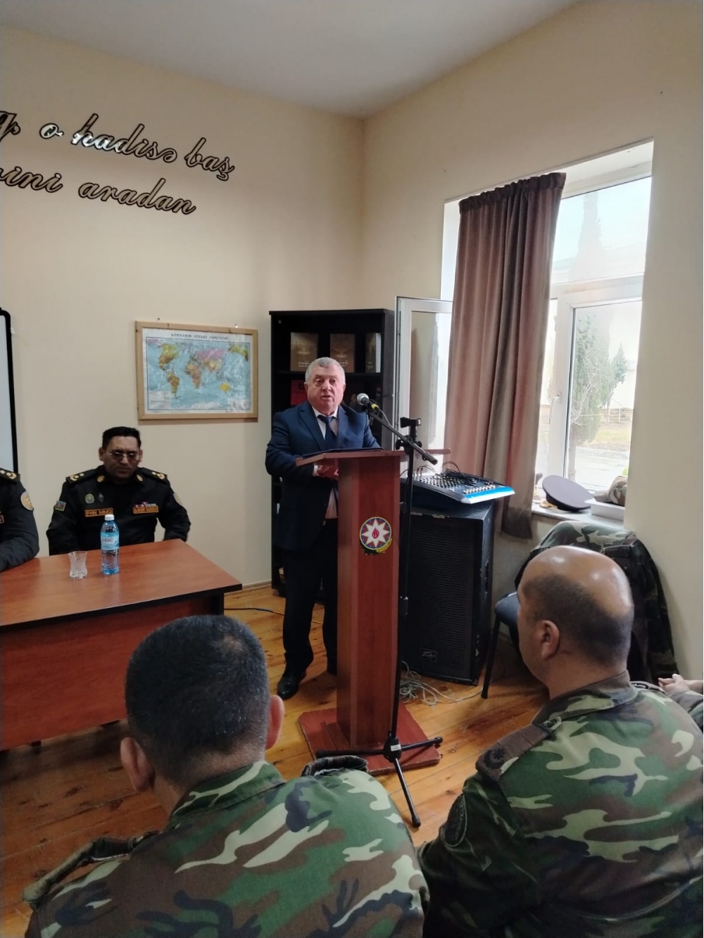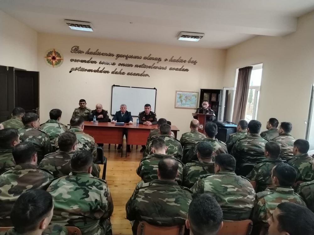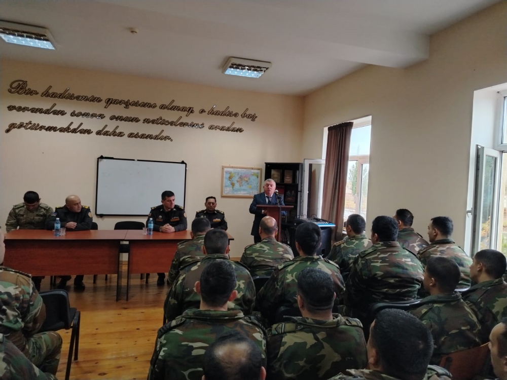 Hərbi hissənin komandirinin şəxsi heyətlə iş üzrə müavini, polkovnik-leytenant Ələsgər Sadiqov Ulu öndərin keçdiyi həyat yolunun mərhələləri və dövlətçilik fəaliyyəti ilə bağlı çıxış edərək onun Azərbaycan tarixində və xalqımızın xatirəsində əbədi yaşayacağını bildirib.