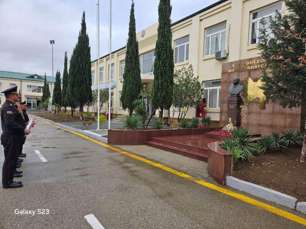 Əvvəlcə Ümummilli lider Heydər Əliyevin hərbi hissənin həyətindəki abidəsi ziyarət olunub, önünə gül dəsətələri düzülərək Ulu öndərin xatirəsi ehtiramla anılıb.