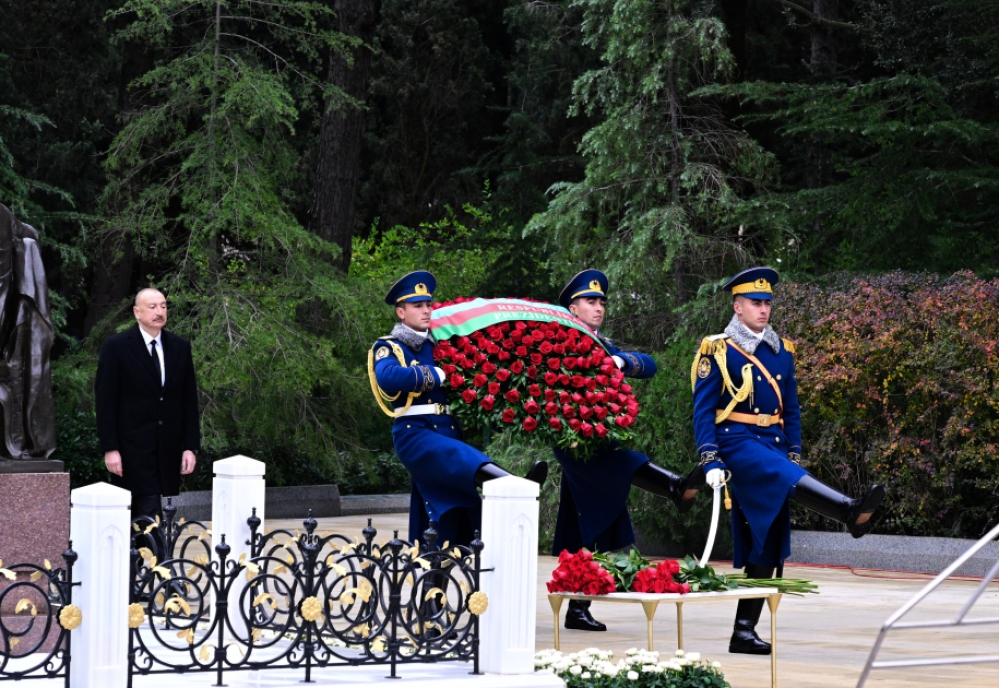 Prezident İlham Əliyev Ulu Öndərin məzarı önünə əklil qoydu.