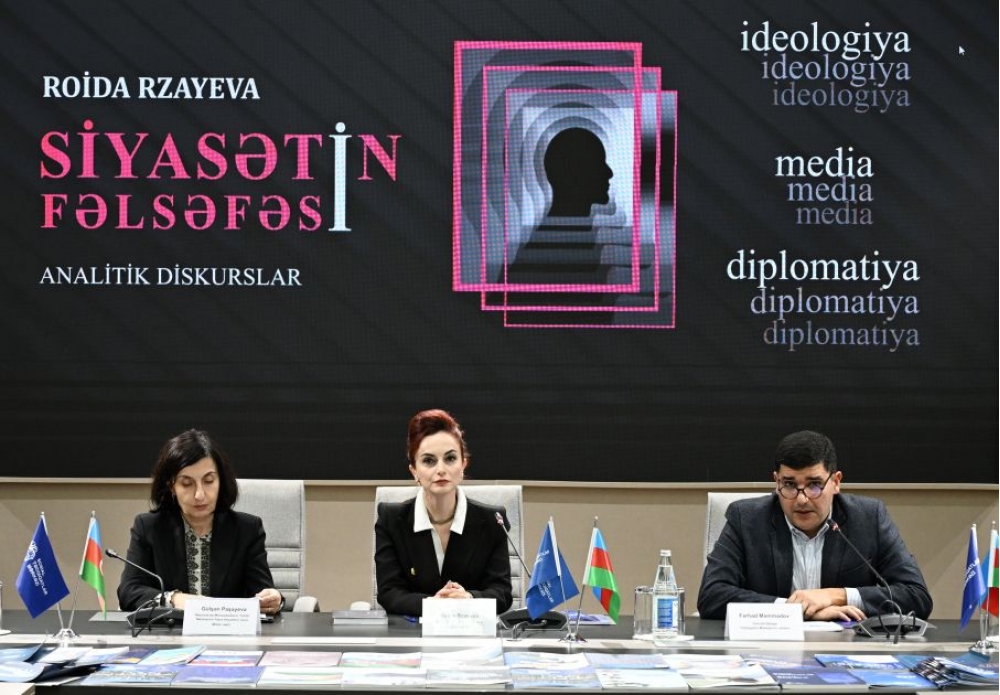 Daha sonra çıxış edən kitabın müəllifi Roida Rzayeva bildirib ki, nəşr şəbəkə sosiallığı və rəqəmsallaşma dövründə siyasət, ideologiya və medianın fənlərarası təhlilinə həsr olunub. Kitab “tətbiqi” və “nəzəri” bölmələrdən ibarətdir və hər iki hissədə müasir siyasi proseslərin müxtəlif aspektləri geniş şəkildə araşdırılır.