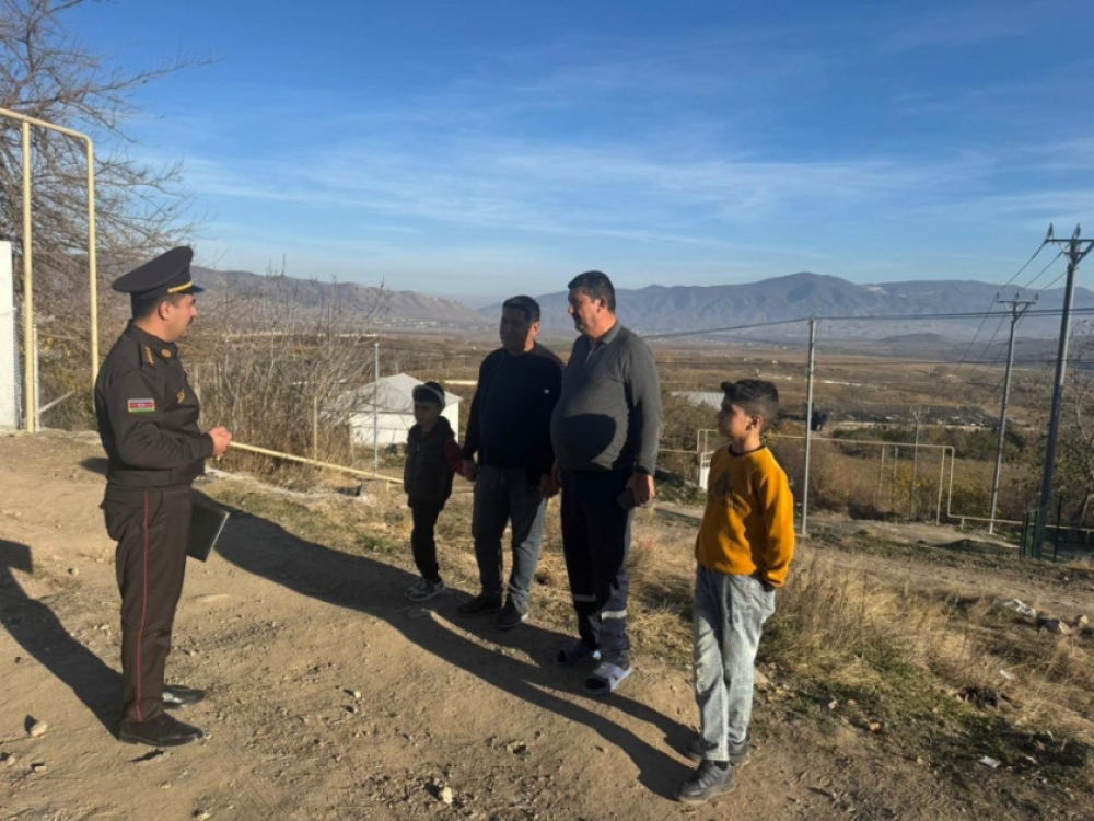 Şuşa şəhərində, Ağdam, Füzuli, Xocalı və Laçın rayonlarında aparılmış növbəti maarifləndirmə işləri çərçivəsində işğaldan azad olunmuş ərazilərdə məskunlaşan, tikinti, yenidənqurma və bərpa işləri ilə məşğul olan, ictimai iaşə obyektlərində çalışan, o cümlədən istirahət və işgüzar məqsədlərlə meşə, açıq ərazi və əkin sahələrinə gedən vətəndaşlara zəruri yanğın təhlükəsizliyi qaydaları ətraflı izah olunaraq onlara əyani vəsaitlər təqdim edilib.