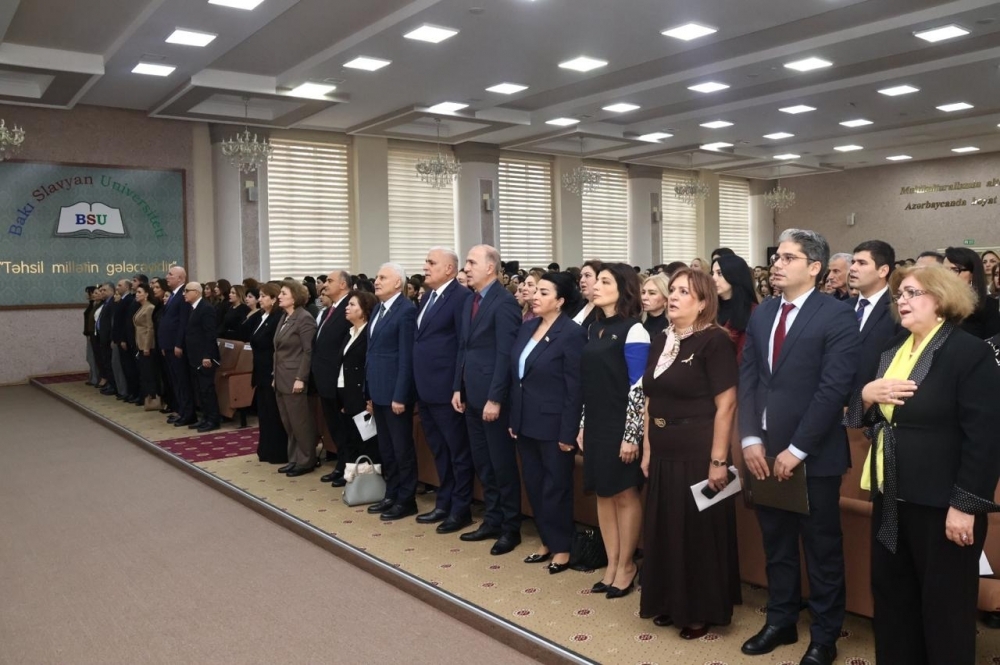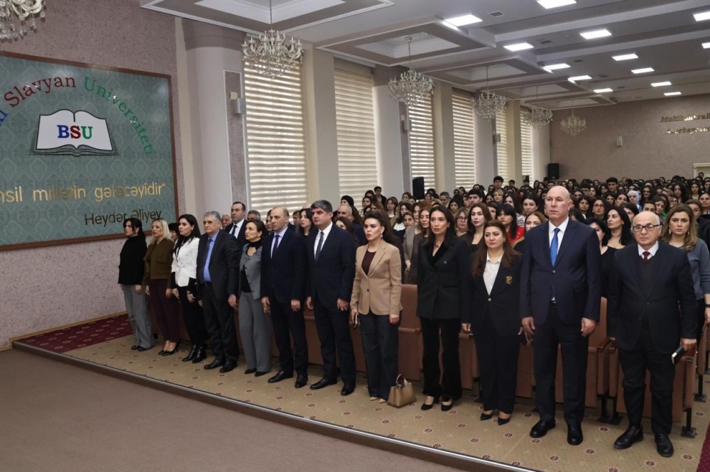 Dekabrın 15-də Bakı Slavyan Universitetində (BSU) Beynəlxalq Türk Dili Ailəsi Gününə həsr olunan “Türk dili-ana dilim” adlı tədbir keçirilib. Tədbirdə BSU-nun rektoru Anar Nağıyev, Milli Məclisin (MM) deputatı, Azərbaycan-Türkiyə(Türkmənistan, Özbəkistan, Qırğızıstan) parlamentlərarası əlaqələr üzrə işçi qrupunun üzvü Məlahət İbrahimqızı, Azərbaycan Dövlət Pedaqoji Universitetinin(ADPU) Beynəlxalq əlaqələr üzrə prorektoru, professor Mahirə Nağıqızı, MM-in deputatı, Türk Dövlətləri Parlament Assambleyasının üzvü Günay Əfəndiyeva , MM-in deputatı, Azərbaycan-Paraqvay parlamentlərarası əlaqələr üzrə işçi qrupunun rəhbəri Hikmət Babaoğlu, Bakı Yunus Emre İnstitutunun direktoru Gökhan Seyhan, BSU-nun Türkologiya kafedrasının professoru Nuridə Novruzova, universitetin professor-müəllim heyəti və tələbələri iştirak ediblər.