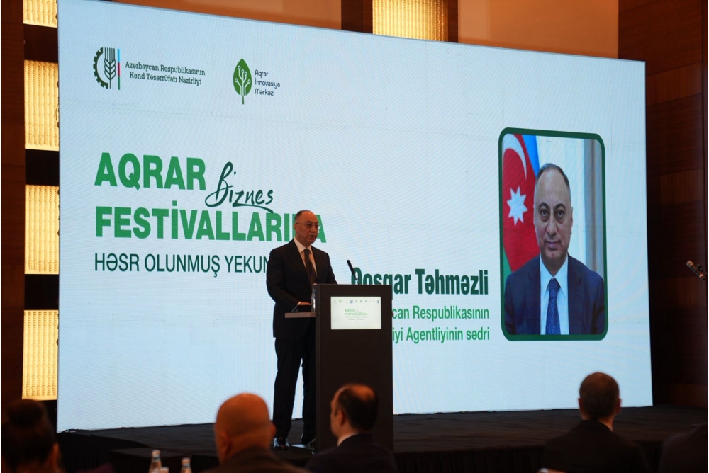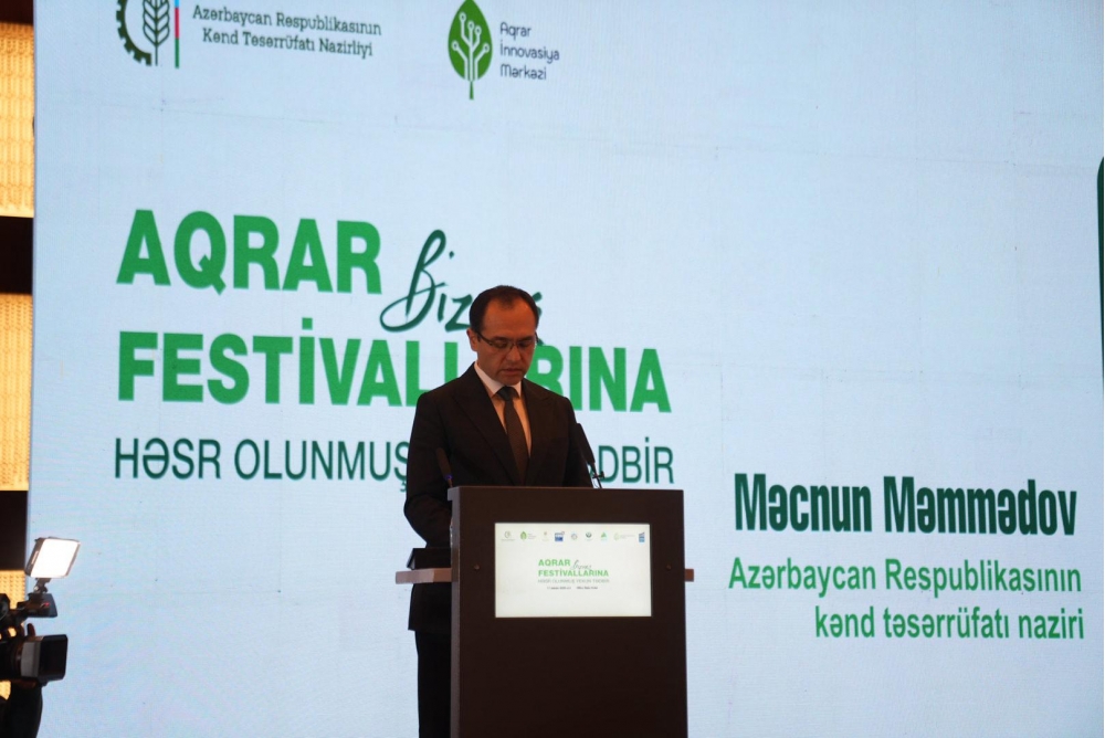 Tədbirdə açılış nitqi ilə çıxış edən kənd təsərrüfatı naziri Məcnun Məmmədov bildirib ki, Azərbaycan Respublikasının Prezidenti cənab İlham Əliyevin rəhbərliyi ilə həyata keçirilən sosial-iqtisadi inkişaf strategiyasında kənd təsərrüfatı prioritet və strateji sahələrdən biri kimi müəyyən edilib: “Son illərdə kənd təsərrüfatında istehsalın səmərəliliyinin artırılması, müasir texnologiyaların tətbiqi, fermerlərin maliyyə və texniki resurslara çıxışının asanlaşdırılması istiqamətində mühüm addımlar atılıb. Rəqəmsal həllərin tətbiqi, elektron kənd təsərrüfatı platformasının genişləndirilməsi, ekoloji cəhətdən dayanıqlı istehsal modellərinə keçid dövlət siyasətinin əsas istiqamətlərindəndir. İqlim dəyişikliklərinin təsirlərinin azaldılması, torpaq və su ehtiyatlarından səmərəli istifadə, eləcə də dəqiq kənd təsərrüfatının tətbiqi aqrar sektorun rəqabətqabiliyyətliliyini daha da artırır. Məhz bu strateji hədəflərin regionlarda təşviqi məqsədilə Aqrar Biznes Festivalları təşkil olunub. Cari ildə ölkənin 13 iqtisadi rayonunu əhatə edən 28 rayonda 32 festival keçirilib, 8 milyon manatdan artıq satış icra olunub. Festivallar çərçivəsində toxum sərgi-satış yarmarkaları, kredit yarmarkaları, panel müzakirələr və təlimlər təşkil edilib”.