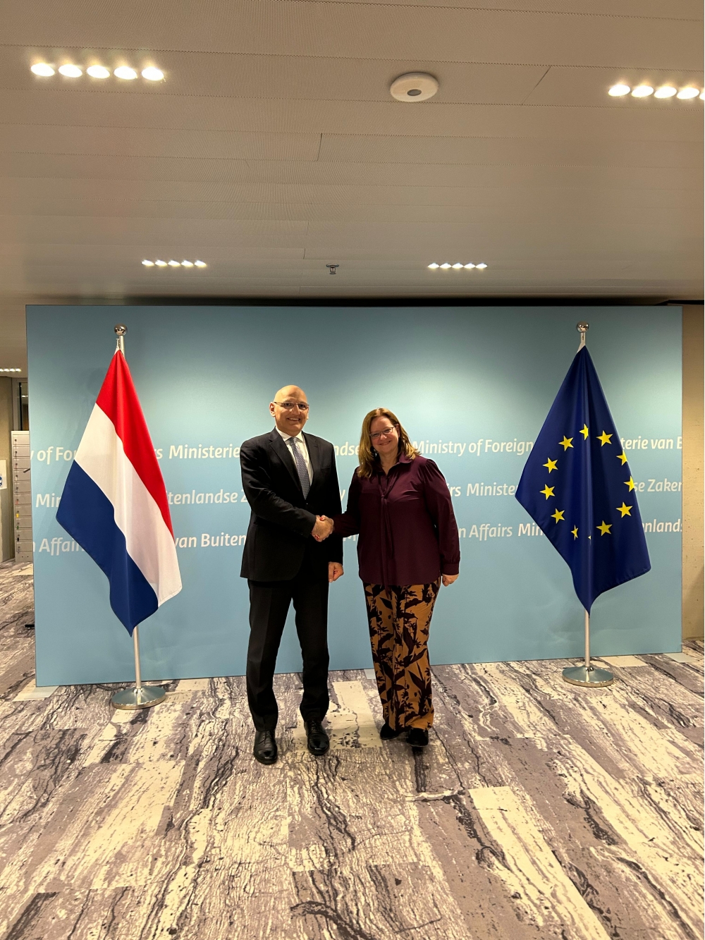 Azərbaycan Respublikası Prezidentinin xüsusi tapşırıqlar üzrə nümayəndəsi Elçin Əmirbəyov Niderland Krallığına işgüzar səfəri çərçivəsində Niderland Krallığının xarici ticarәt vә inkişaf naziri Aukje de Vries, Xarici İşlәr Nazirliyinin (XİN) baş katibi Christiaan Rebergen, xarici işlәr nazirinin müavini Marsel de Vink, Niderlandın Baş nazirinin milli təhlükəsizlik müşavirinin müavini Joost van Deutekom, Niderland Senatının Xarici İşlәr, Müdafiә vә İnkişaf Komitәsinin sәdri, senator Koen Peterssen və komitәnin digәr üzvlәri, eləcə də bu ölkənin nüfuzlu dövlət və siyasi xadimləri ilə görüşlər keçirib.
