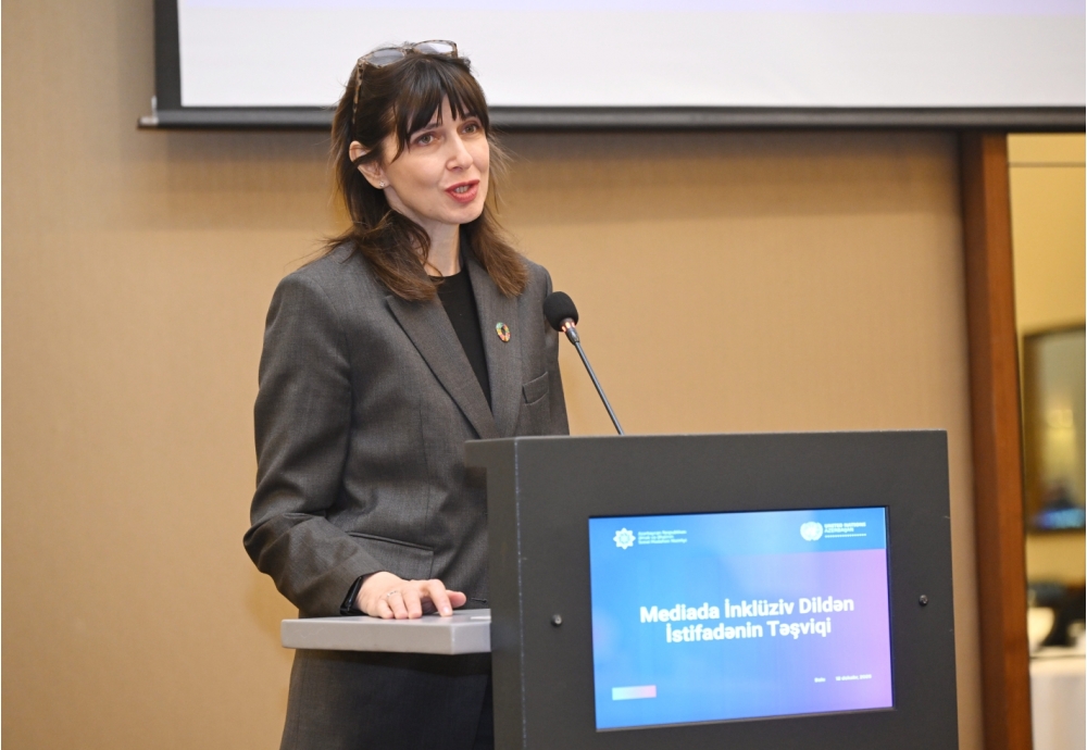 BMT-nin Azərbaycandakı rezident əlaqələndiricisi xanım Vladanka Andreeva BMT-nin Əlillik üzrə İnklüziv Kommunikasiya Təlimatını qeyd edib, mediada inklüziv dildən istifadənin əhəmiyyətini, bu təlimin iştirakçılar arasında dialoqu təşviq etməyi, yaxşı təcrübələri paylaşmağı və mediada inklüziv dildən istifadə üzrə potensialı artırmağı hədəflədiyini bildirib.