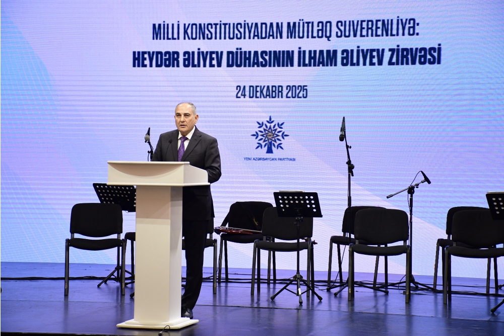 Çıxış edən Yeni Azərbaycan Partiyası Sədrinin müavini – Mərkəzi Aparatın rəhbəri Tahir Budaqov bu əlamətdar gündə keçirilən tədbirin mövzusunun çağdaş tariximizin möhtəşəm dövrü ilə həmahəng olduğunu bildirib: “Çünki günümüzün reallığı budur ki, dünyada bir çox ölkələr mühüm resurslara – əlverişli coğrafi mövqeyə, təbii sərvətlərə, böyük iqtisadi və demoqrafik potensiala sahib olsalar da, öz siyasətlərini milli maraqlara uyğun həyata keçirə bilmirlər. Müasir Azərbaycanın nümunəsi isə təsdiqləyir ki, məhz zəngin dövlətçilik təcrübəsinə, xalqın birmənalı və qətiyyətli dəstəyinə malik lideri olan ölkələr milli mənafelərə əsaslanan siyasət vasitəsilə davamlı inkişafı təmin edir və beynəlxalq aləmdə nüfuz sahibi olurlar. Çoxəsrlik dövlətçilik tarixinə malik Azərbaycan mürəkkəb sosial-iqtisadi və geosiyasi vəziyyətə baxmayaraq, müstəqilliyin bərpasından sonra yüksəlişini təmin edə, dünyada nüfuzlu dövlət kimi tanına bilmişdir. Bu, birmənalı olaraq Heydər Əliyev dühası və Prezident İlham Əliyevin uzaqgörən və məqsədyönlü fəaliyyəti sayəsində mümkün olmuşdur. Ümumxalq etimadını doğruldan dahi liderlərin uğurlu siyasəti nəticəsində sabitlik və tərəqqi yoluna qədəm qoymuş Azərbaycanın adı bu gün qüdrətli və qalib dövlətlər sırasında çəkilir”.