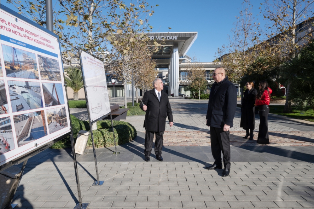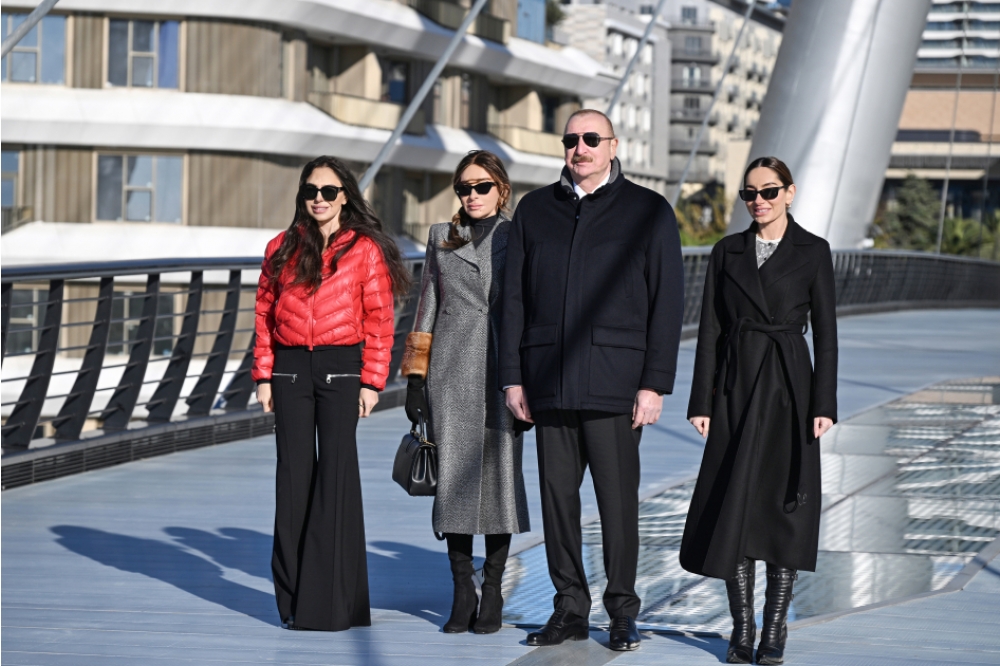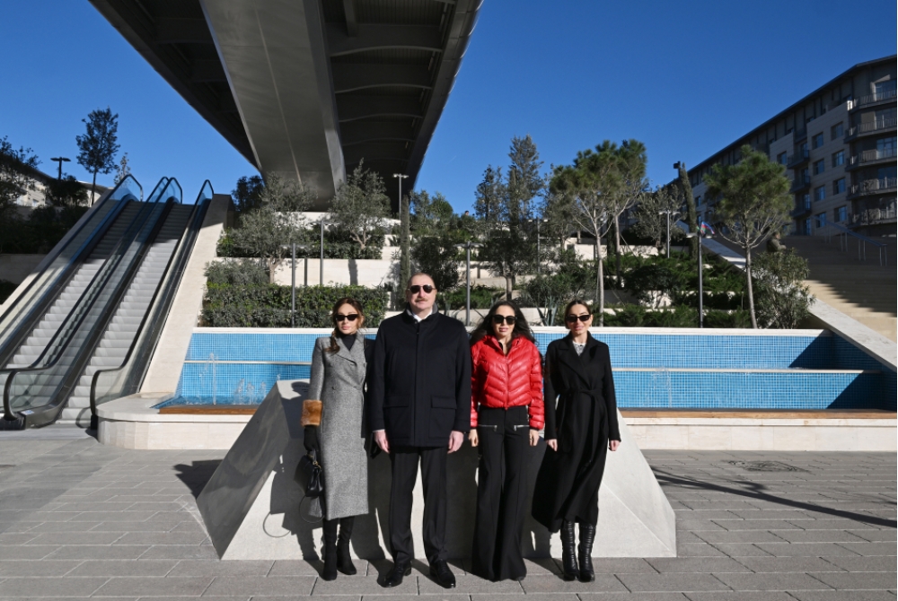 Dövlətimizin başçısı, birinci xanım və qızları “Bakı Ağ Şəhər”də Zaman meydanı və buradakı piyada körpüsünün açılışında da iştirak etdilər.