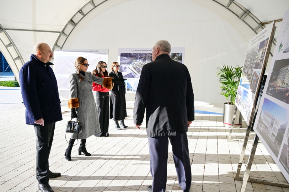 Sonra dövlətimizin başçısı, birinci xanım və qızları “Bakı Ağ Şəhər”də Babək kvartalında həyata keçirilən işlərlə tanış oldular. Hazırda bu layihənin icrası istiqamətində işlər uğurla davam edir. Ərazisi 31 hektar olan kvartalda yeni park, məktəb binası, metronun bənövşəyi xəttində yeni stansiya, sərnişinlərin rahat hərəkəti üçün böyük nəqliyyat qovşağı, həmçinin çoxfunksiyalı qeyri-yaşayış, ictimai və yaşayış binalarının inşası planlaşdırılır. Ərazidə kafelər, uşaq oyun meydançası və digər sosial infrastruktur yaradılacaq. Bundan başqa, yaxınlıqda 2, 3, 6, 8 və 20 mərtəbəli binalar tikiləcək.