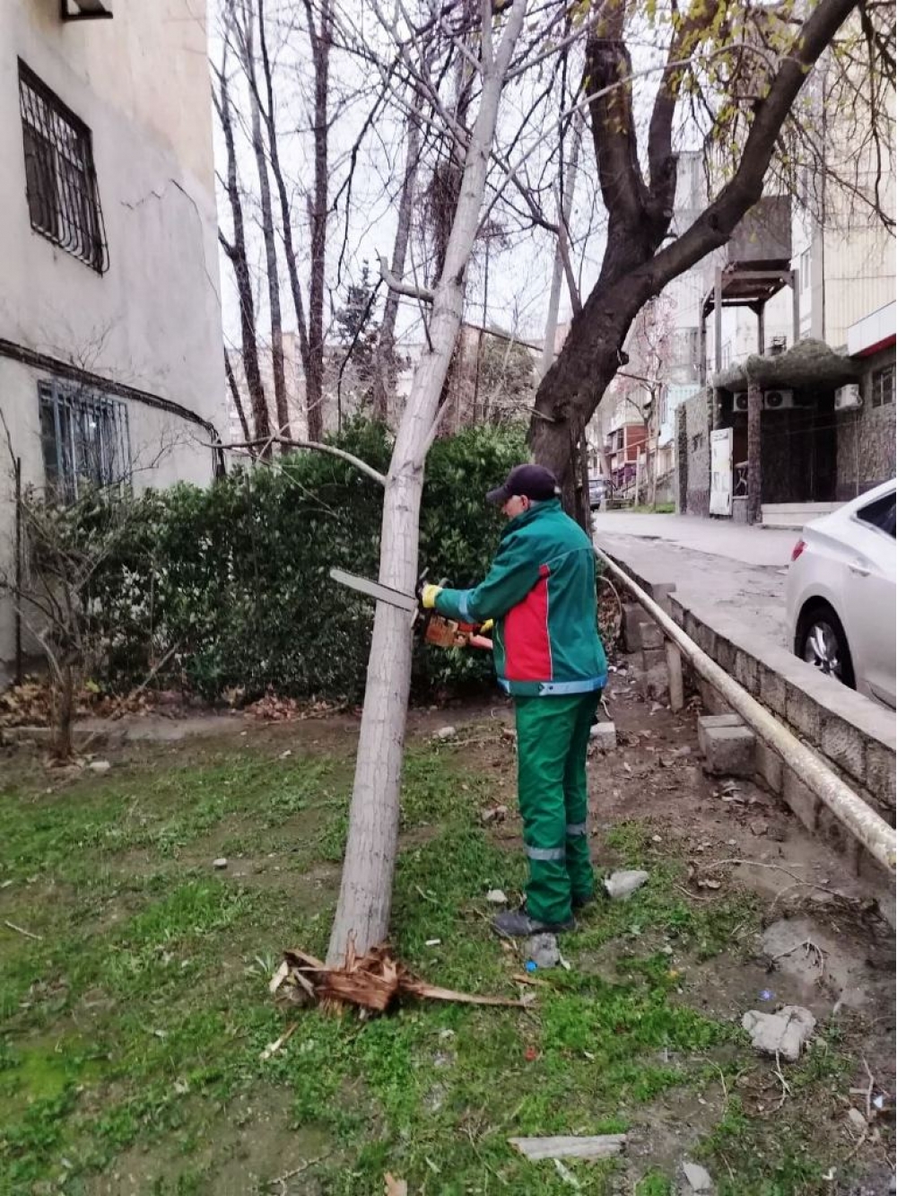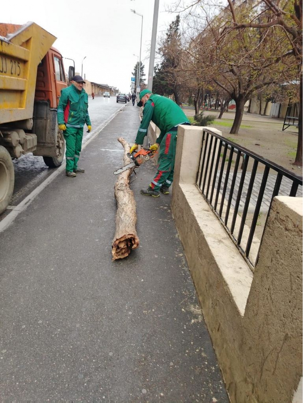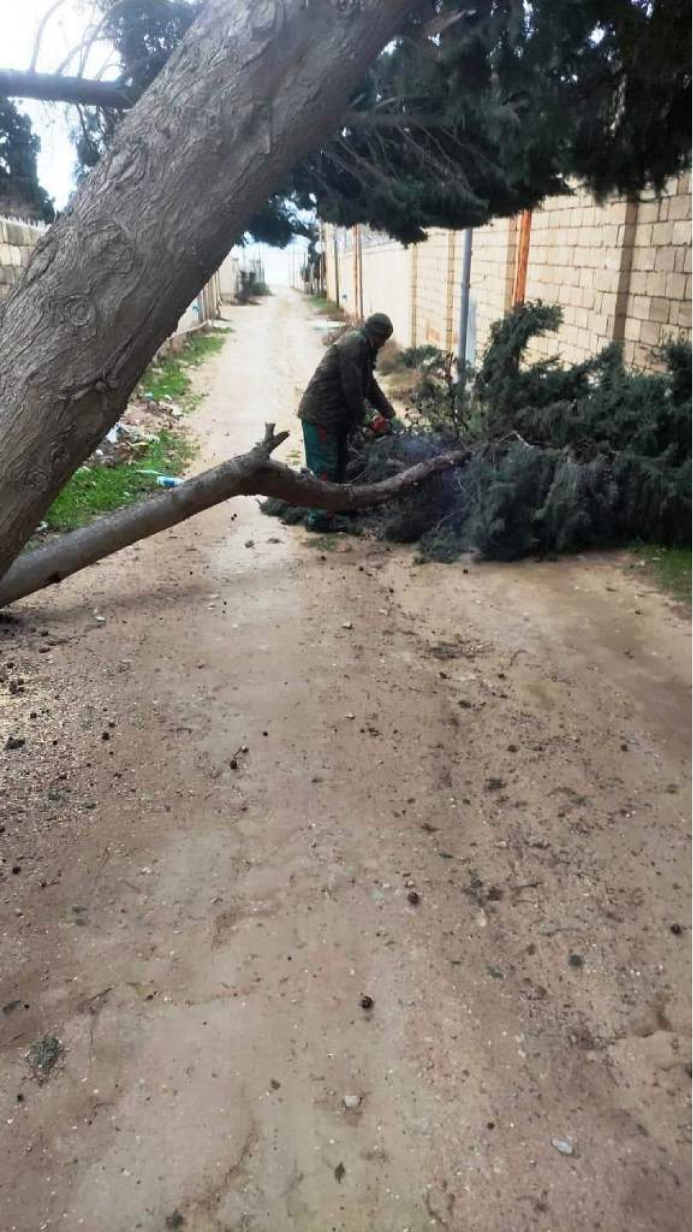 Sınan ağaclar və qırılan budaqlar birliyin növbətçi briqadaları tərəfindən operativ şəkildə görütülüb, ərazi təmizlənib.