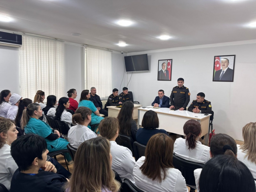 Əvvəlcə, təlimin nəzəri hissəsində FHN-in əməkdaşları tərəfindən xəstəxananın kollektivinə fövqəladə hallar, o cümlədən yanğınlar zamanı zəruri davranış qaydaları, təxliyə tədbirləri barədə ətraflı məlumat verilib, bu barədə videoçarxlar nümayiş etdirilib.
