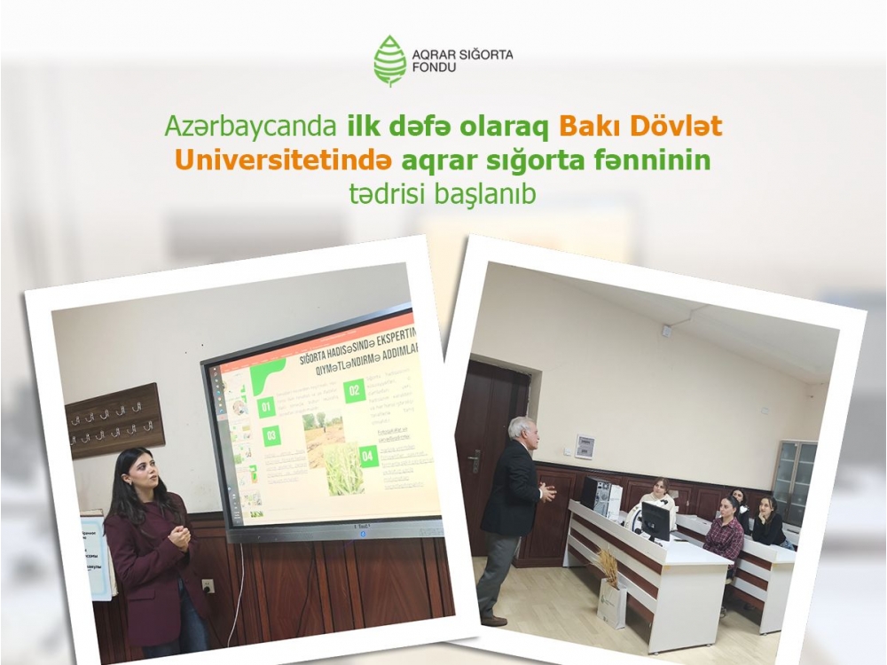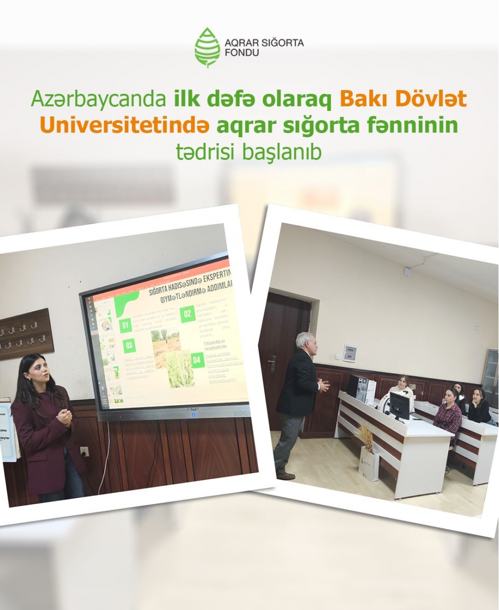 “İki sahil” xəbər verir ki, ölkəmizin ən nüfuzlu təhsil ocaqlarından biri olan Bakı Dövlət Universitetində 2025-2026-cı tədris ilindən aqrar sığorta fənninin tədrisinə başlanılıb.