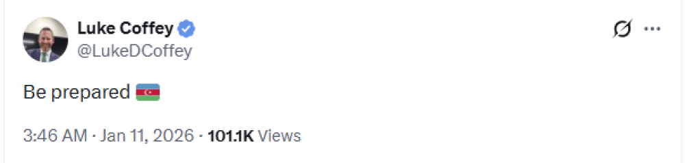 Azərbaycan bayrağı fonunda cəmi iki söz – “Be prepared” (“Hazır olun”). Bu qısa, amma son dərəcə sarsıdıcı mesaj ABŞ-də diqqətlə izlənilən analitik, təhlükəsizlik strateqi Lyuk Koffi tərəfindən “X” platformasında paylaşılıb və dərhal ciddi müzakirələrə səbəb olub.