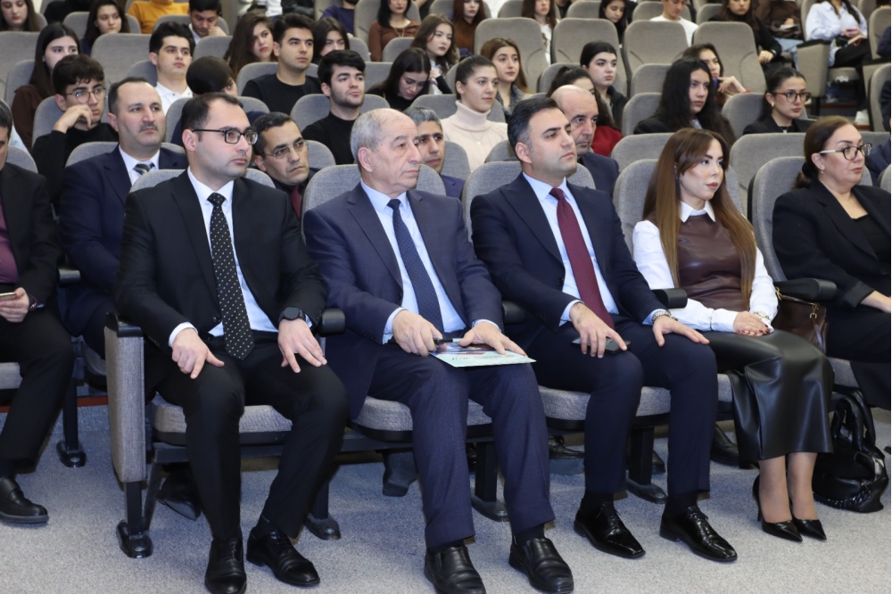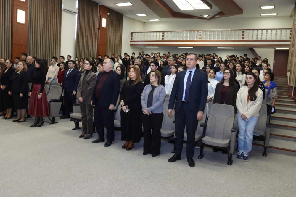Tədbirin rəsmi hissəsindən öncə Universitetin inzibati binasında Ulu Öndər Heydər Əliyevin büstü önünə tər gül dəstələri düzülüb, Ümummilli Liderin əziz xatirəsi dərin ehtiramla yad edilib.
