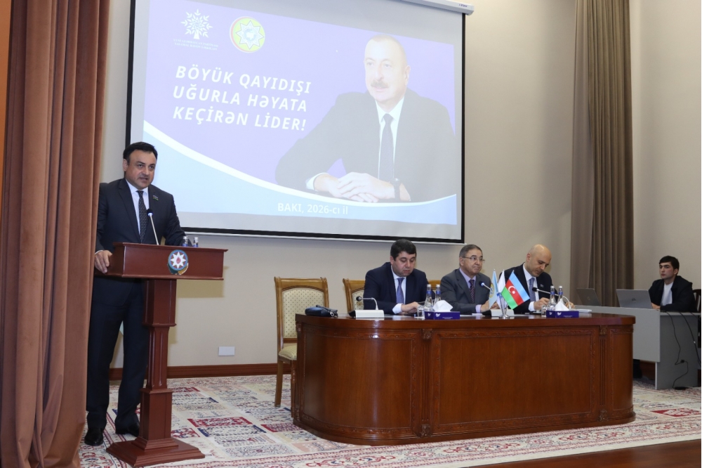 Giriş nitqi ilə çıxış edən Bakı Biznes Universitetinin rektoru İbad Abbasov tədbir iştirakçıalrını salamlayaraq ilk öncə “Şəhərsalma və Memarlıq İli”nin əhəmiyyətindən bəhs edib. Qeyd olunub ki, Ulu Öndər Heydər Əliyevin yaratdığı möhkəm təməllər əsasında Prezident İlham Əliyev müstəqil Azərbaycanın misilsiz inkişaf yolunu müəyyənləşdirib. Böyük Qayıdış Azərbaycan dövlətçiliyinin Ulu Öndər Heydər Əliyev tərəfindən müəyyən edilmiş strateji inkişaf xəttinin məntiqi davamıdır. Məhz Ümummilli Lider Heydər Əliyev milli dövlət quruculuğunun əsaslarını yaradaraq torpaqlarımızın bərpasını tarixi məqsəd kimi formalaşdırdı. Bu siyasi və ideoloji xətt Prezident İlham Əliyev tərəfindən yeni dövrün reallıqlarına uyğun şəkildə uğurla davam etdirildi. Hərbi-siyasi və diplomatik sahələrdə əldə olunan nailiyyətlər xalq-iqtidar-ordu birliyinin gücünü bütün dünyaya nümayiş etdirib. 44 günlük Vətən müharibəsində qazanılan Qələbə xalqımızın həmrəyliyinin təntənəsi idi. Bu Zəfər həm doğma torpaqların azad olunması, həm də dövlət suverenliyinin bərpasına gətirib çıxardı. Hazırda işğaldan azad edilmiş ərazilərdə aparılan genişmiqyaslı bərpa və quruculuq işləri Böyük Qayıdışın reallığa çevrildiyini göstərir. Qarabağ və Şərqi Zəngəzurda həyata keçirilən irimiqyaslı layihələr burada həyatın yenidən canlanmasının təzahürüdür. Prezident İlham Əliyevin uzaqgörən siyasəti nəticəsində azad torpaqlarda müasir infrastruktur qurulur, yeni yaşayış mühiti formalaşır. Həmin proses gələcək nəsillərə sabit və firavan həyat bəxş edəcəkdir. Tarixi torpaqlara qayıdış dövlət başçısının müdrik siyasətinin təntənəsidir. Sosial baxımdan Böyük Qayıdış insan ləyaqətinin bərpasıdır. Sakinlərin mərhələli şəkildə doğma torpaqlarına köçürülməsi planlı və təhlükəsiz şəkildə həyata keçirilir. Müasir yaşayış kompleksləri, infrastrukturlar yüksək həyat və fəaliyyət standartlarına cavab verir. Birinci vitse-prezident Mehriban xanım Əliyeva bu proseslərdə humanitar və sosial istiqamətlərin əsas təminatçısıdır. Heydər Əliyev Fondu azad edilmiş ərazilərdə ardıcıl uğurlu şəkildə təhsil, mədəniyyət və sosial layihələr icra edir.