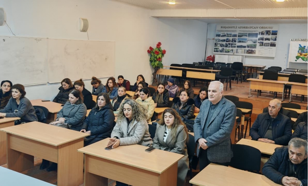 Tədbiri giriş sözü ilə açan Kürdəmir şəhər M.Ə.Rəsulzadə adına 2 saylı tam orta məktəb-liseyinin direktoru, “M.F.Axundov küçəsi 25” ərazi partiya təşkilatının sədri Elnur Məmmədli ərazi partiya təşkilatının ötən dövr ərzində fəaliyyəti barədə geniş məlumat verdi. Daha sonra partiyanın cəmiyyətdəki rolundan, partiyanın VII qurultayndan sonra qarşıya qoyulan məsələlərdən, Azərbaycanın təbii sərvətlərinin insan kapitalına çevrilməsi istiqamətində Prezident İlham Əliyevin rəhbərliyi altında təhsil sahəsində bir sıra dövlət proqramları icra olunmasından danışdı. Bildirdi ki, Yığıncağın məqsədi həm də rayonun orta ümumtəhsil müəssisələrində çalışan təhsil işçiləri ilə sıx əlaqə yaratmaq, onların təklif, rəy və təşəbbüslərindən təhsil sahəsində həyata keçirilən islahatlar prosesində istifadə etmək, təhsil müəssisələrində vətənpərvərlik işinin mövcud vəziyyət və onun gücləndirilməsinin əsas istiqamətləri barədə tövsiyələr vermək olduğunu bildirib.