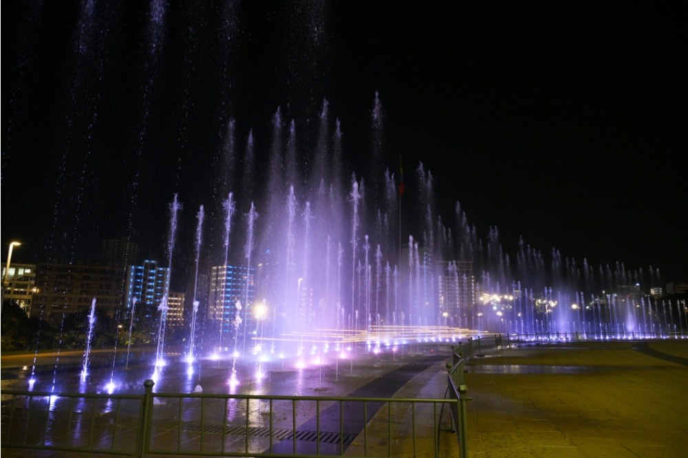 Parkın mərkəzindəki möhtəşəm musiqili fəvvarənin nümayişi ətrafda sehrli bir atmosfer yaradıb. Azərbaycan xalq mahnılarının həzin sədaları altında rəqs edən su damlaları, musiqinin akkordları ilə harmoniya təşkil edərək zərif bir sənət əsərini xatırladıb.