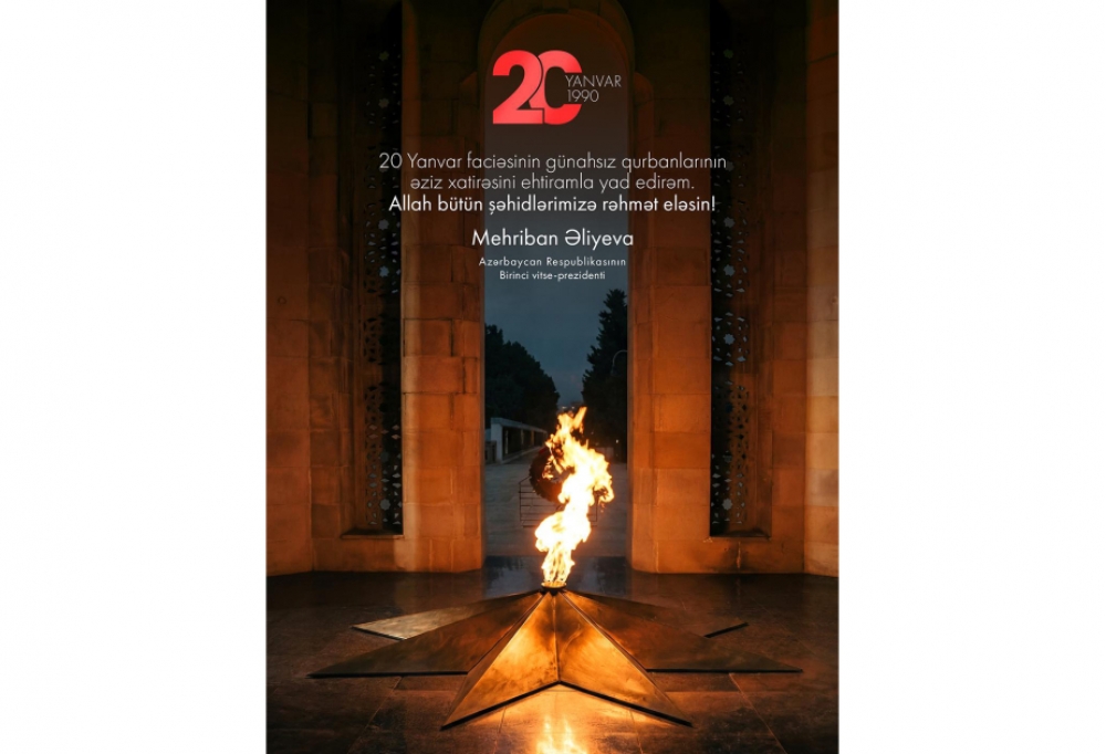 Azərbaycan Respublikasının Birinci vitse-prezidenti Mehriban Əliyeva sosial şəbəkə hesablarında 20 Yanvar faciəsinin 36-cı ildönümü ilə bağlı paylaşım edib.