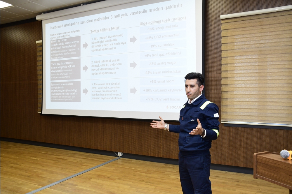 Məlumat verildi ki, SOCAR 3 il ərzində istehsalat səmərəliliyi, proses təhlükəsizliyi və SƏTƏM üzrə qabaqcıl texnologiyalara sərmayə yatıraraq bu istiqamətlərdə inkişafa nail olub. Bu xüsusda “SOCAR Karbamid” zavodunun fəaliyyətində mürəkkəb kimyəvi istehsal proseslərinin idarə olunmasının qabaqcıl avtomatlaşdırma və prosesə nəzarət sistemlərinə əsaslanmasına diqqət ayrılıb. Belə ki, SOCAR “Caspian AI” İnstitutunu təsis edərək mövcud avtomatlaşdırma texnologiyalarının təkmilləşdirilməsini, süni intellekt modellərindən istifadəni, əməkdaşların rəqəmsal bacarıqlarının davamlı şəkildə inkişaf etdirilməsini genişləndirib.