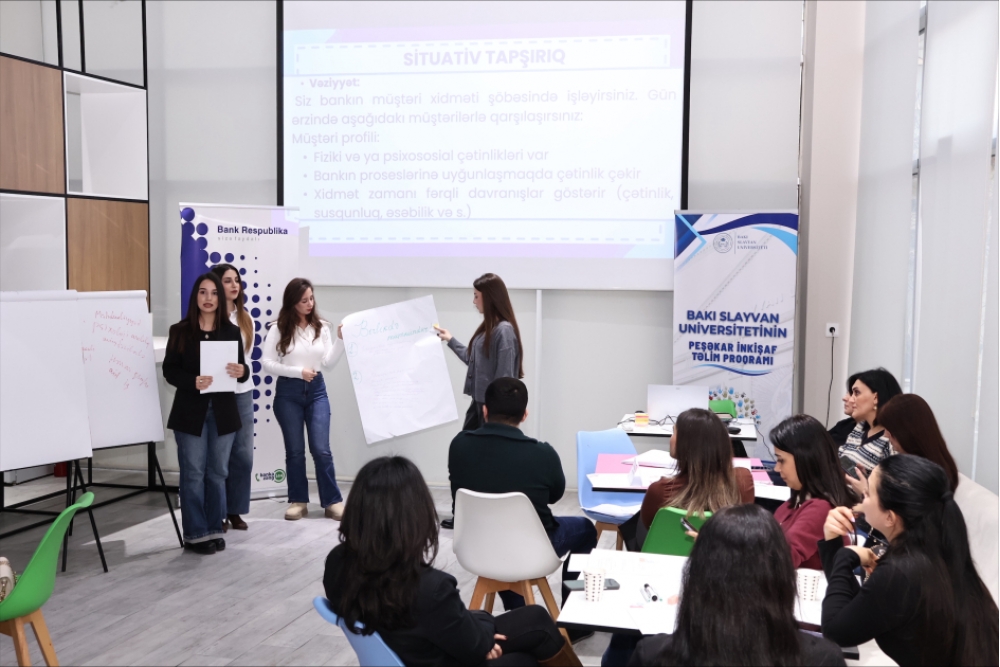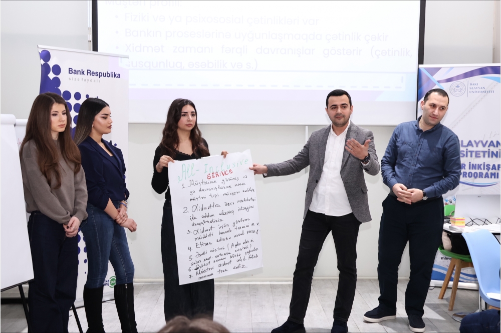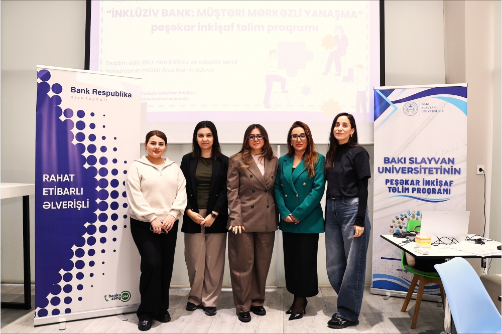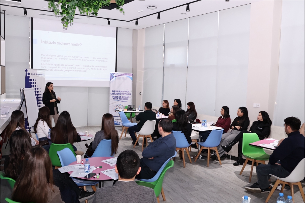 Yanvarın 24-də Bakı Slavyan Universitetinin (BSU) “İnklüziv təhsildən inklüziv cəmiyyətə” layihəsi çərçivəsində Bank Respublikanın rəsmi müraciətinə əsasən bankın Müştəri xidmətləri departamentinin əməkdaşları üçün “İnklüziv bankçılıq” peşəkar təlim proqramı təşkil olunub.