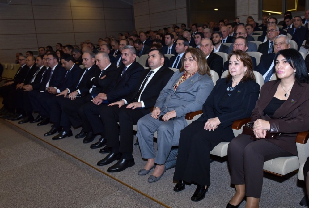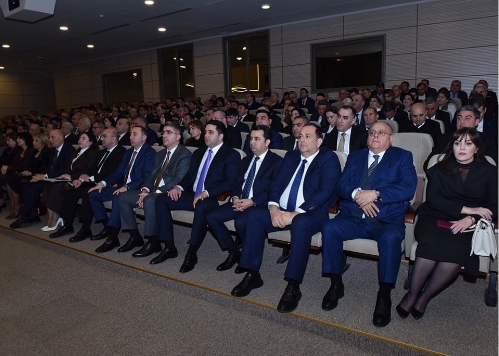 Azərbaycan Respublikası Prezidentinin Administrasiyasının Ərazi-təşkilat məsələləri şöbəsinin 3-cü ərazi sektorunun müdiri Vəfadar Bağırov çıxış edərək Prezident İlham Əliyevin rəhbərliyi ilə həyata keçirilən ardıcıl və məqsədyönlü dövlət siyasəti nəticəsində 2025-ci ildə ölkəmizdə bütün sahələrdə mühüm nailiyyətlərin əldə olunduğunu, genişmiqyaslı quruculuq işlərinin aparıldığını, sosial-iqtisadi inkişafın və əhalinin sosial rifahının yüksəldiyini vurğulayıb. O, beynəlxalq münasibətlər sistemində Azərbaycanın mövqelərinin daha da möhkəmləndiyini qeyd edərək, Prezident İlham Əliyevin müəyyən etdiyi strateji islahatlar, qarşıda duran yeni hədəflər və şəhərin gələcək fəaliyyətinə dair prioritet istiqamətlər barədə ətraflı məlumat verib.