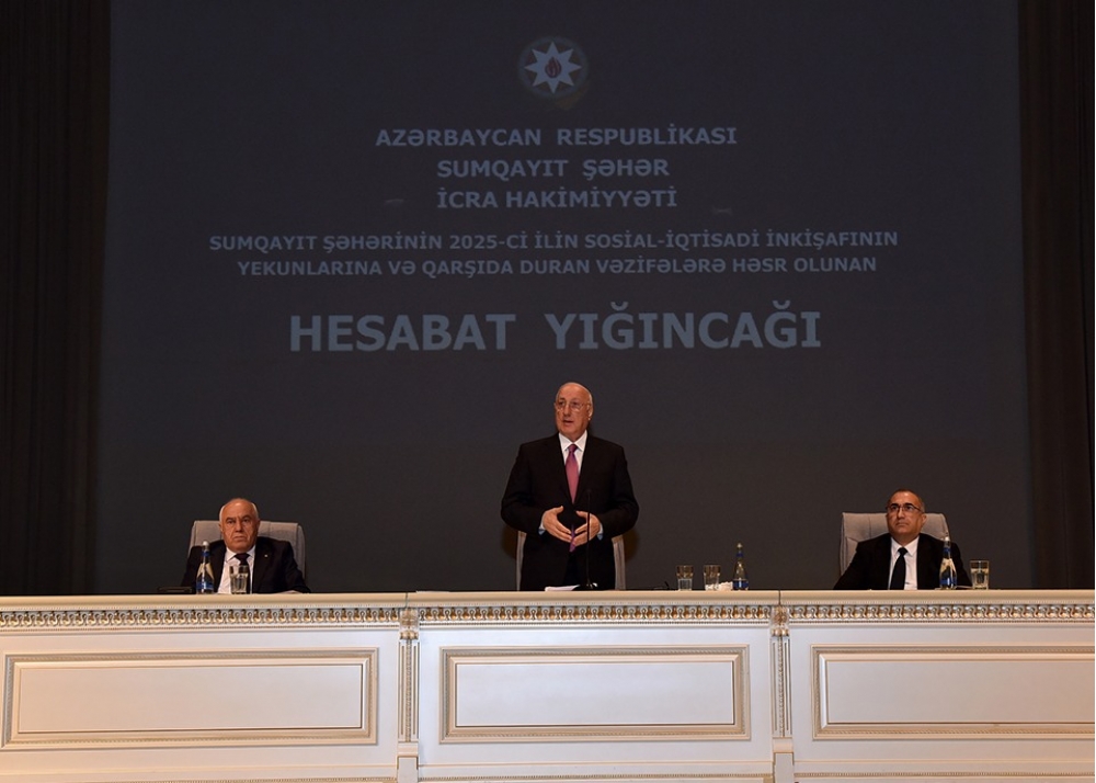 Sumqayıt şəhərinin 2025-ci ilin sosial-iqtisadi inkişafının yekunlarına və qarşıda duran vəzifələrə həsr olunmuş hesabat yığıncağı keçirilib.