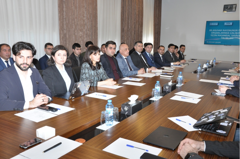 Azərbaycan Respublikasının Prezidenti İlham Əliyevin sədrliyi ilə ölkədə süni intellektin (Sİ) inkişafı və rəqəmsal transformasiyaya dair 11 fevral 2026-cı il tarixində keçirilmiş müşavirədən irəli gələn vəzifələrə uyğun olaraq Biləsuvar rayonunda dövlət idarəçiliyinin rəqəmsal transformasiyasını sürətləndirmək və kadr potensialını müasir standartlara uyğunlaşdırmaq məqsədilə rayonda fəaliyyət göstərən dövlət qurumlarının, hüquq-mühafizə orqanlarının əməkdaşları üçün genişmiqyaslı rəqəmsal savadlılıq təlimləri keçirilib.