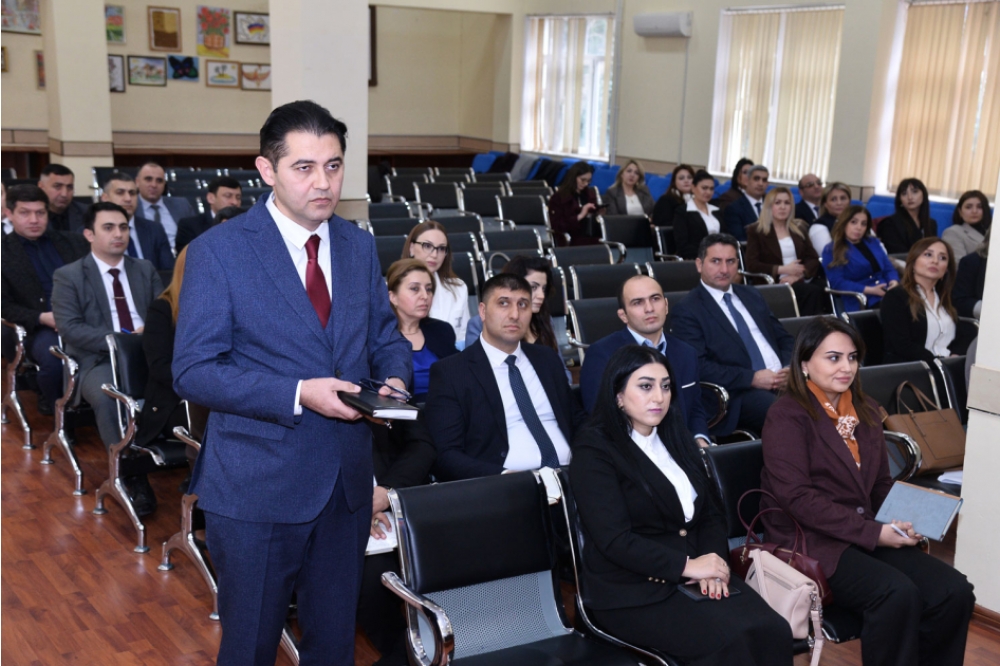 İdarənin strukturuna dair təqdimatla çıxış edən Təhsilin keyfiyyətinə nəzarət sektorunun müdiri Zinyət Əmirova ayrı-ayrı struktur bölmələrin səlahiyyət çərçivəsi haqqında məlumat verib, düzgün təşkil olunmuş kommunikasiyanın təhsildə keyfiyyətin təmin olunması və səmərəli məktəb mühitinin formalaşdırılmasındakı rolundan danışıb.