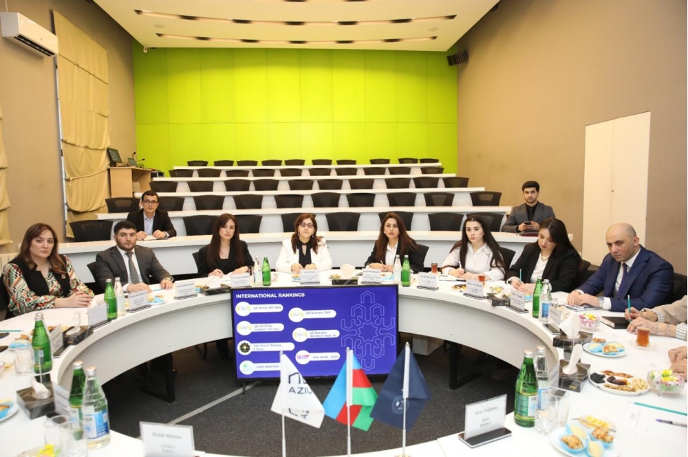 ADNSU və BSU-nun prorektorları, struktur bölmə rəhbərləri,bir sıra şöbə müdirlərinin iştirakı ilə keçirilən görüşdə qonaqları salamlayan ADNSU-nun rektoru Rüfət Əzizov universitetin tarixi, fəaliyyət istiqamətləri, tədris prosesinin mövcud vəziyyəti və təhsil ocağının beynəlxalq əlaqələrihaqda məlumat verib. O, universitetin əsas hədəfinin tədqiqat universitetinə çevrilmək olduğunu diqqətə çatdırıb.
