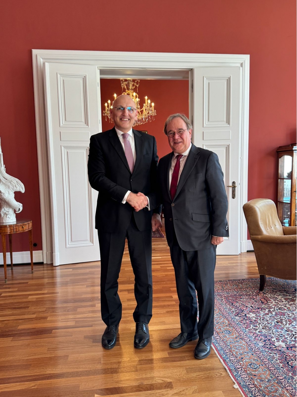 Almaniya Federativ Respublikasına işgüzar səfəri çərçivəsində Azərbaycan Respublikası Prezidentinin xüsusi tapşırıqlar üzrə nümayəndəsi Elçin Əmirbəyov XIN-in Avropa məsələləri üzrə dövlət naziri Günter Krixbaum, Prezidentinin xarici siyasət üzrə müşaviri Volfqanq Dold, AFR kanslerinin xarici və təhlükəsizlik siyasəti məsələləri üzrə müşavirinin müavini Aleksander Eberl, Bundestaqın xarici siyasət komitəsinin sədri Armin Laşet, Bundestaqının Almaniya-Cənubi Qafqaz parlamentlərarası əlaqələr üzrə işçi qrupunun rəhbəri Mirze Edis və qrupun digər üzvləri, və AFR Xarici İşlər Nazirliyinin Şərqi Avropa, Qafqaz və Mərkəzi Asiya üzrə direktoru Niklas Vaqner ilə görüşlər keçirib.