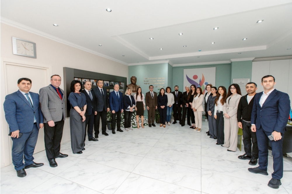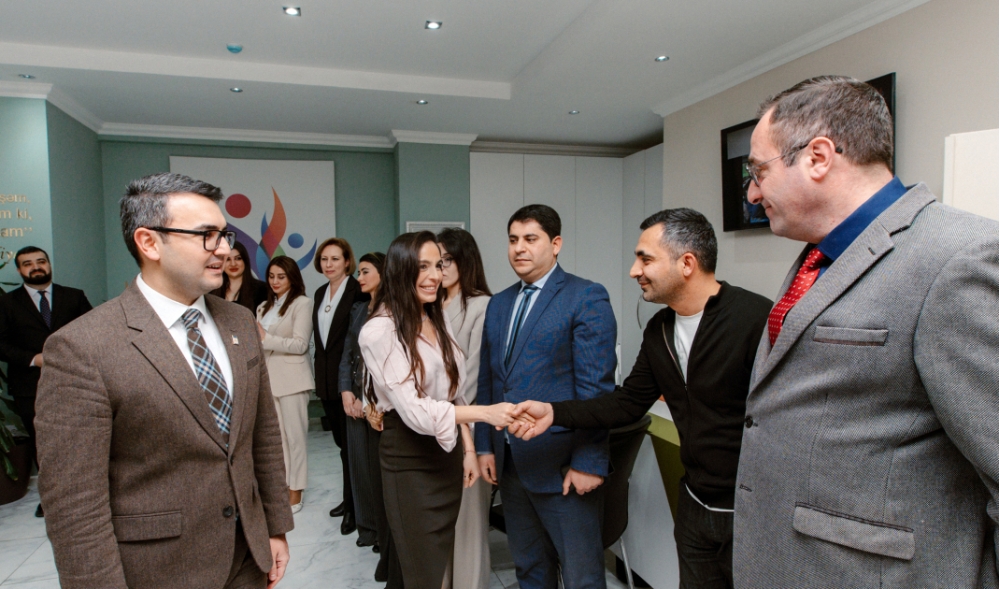 Leyla Əliyeva Mərkəzin kollektivi ilə həmsöhbət olub, onlarla şəkil çəkdirib.