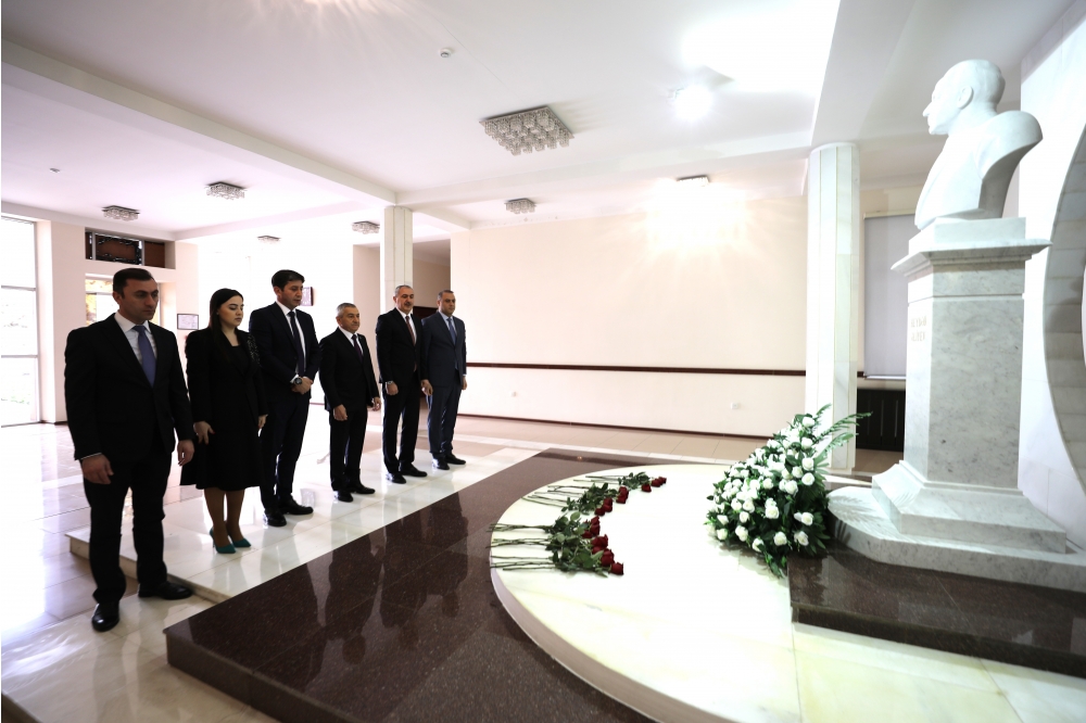 Əvvəlcə Ulu Öndər Heydər Əliyevin büstü önünə gül dəstələri düzülüb, dahi şəxsiyyətin əziz xatirəsi ehtiramla yad olunub.