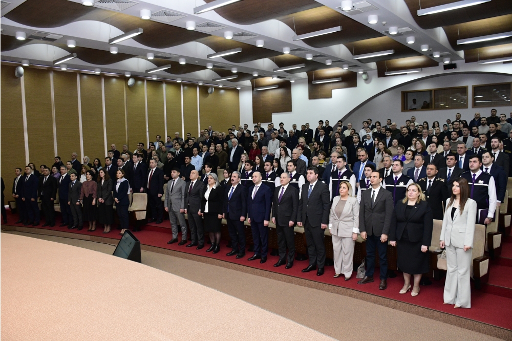 Ulu Öndər Heydər Əliyevin, Azərbaycanın ərazi bütövlüyü və suverenliyi uğrunda canlarını qurban vermiş şəhidlərin əziz xatirəsi bir dəqiqəlik sükutla yad edilib. Azərbaycan Respublikasının Dövlət Himni səsləndirilib.