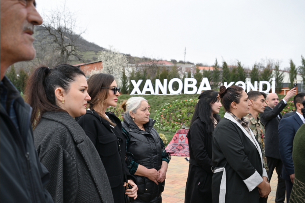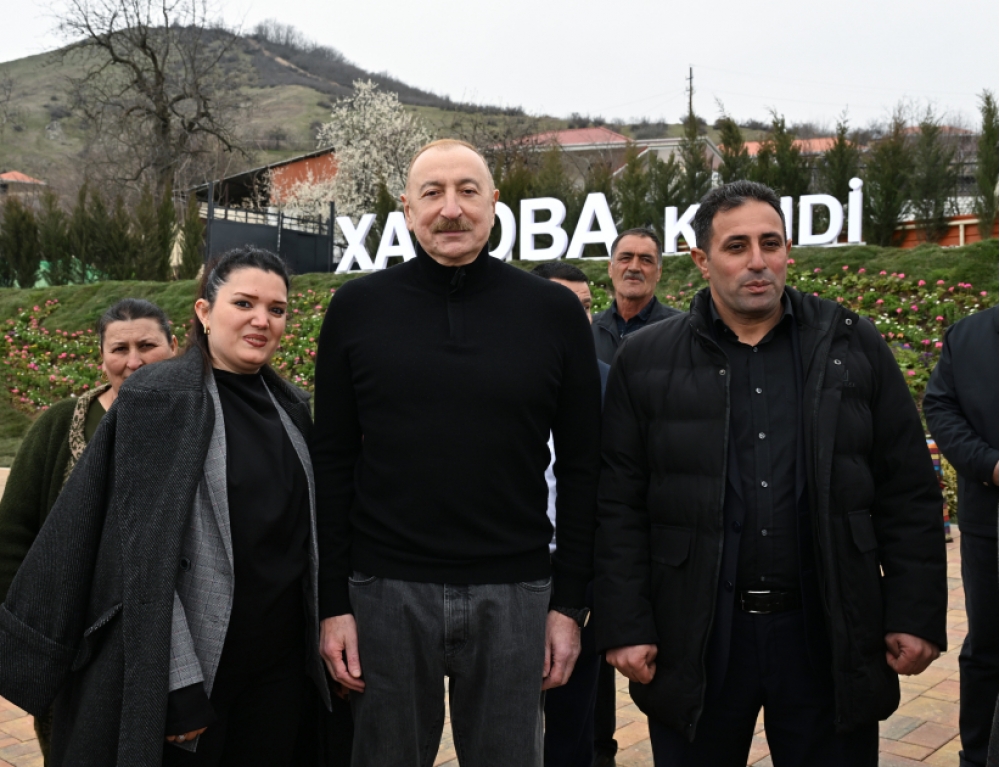 Daha sonra Prezident İlham Əliyev və birinci xanım Mehriban Əliyeva Xanobaya qayıdan kənd sakinləri ilə görüşüblər.