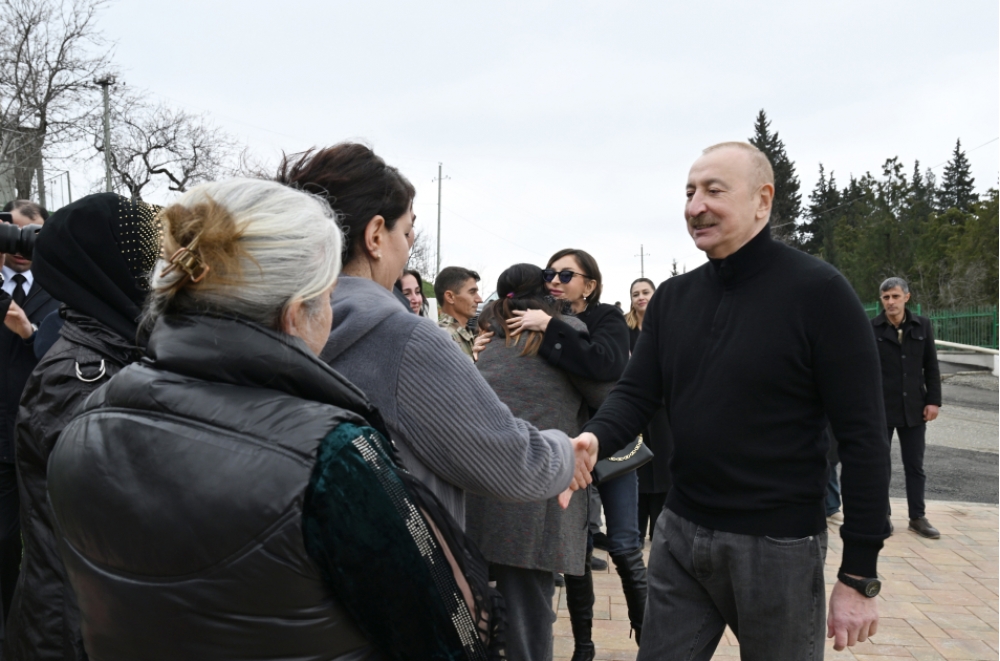 Prezident İlham Əliyev: Əsas odur ki, doğma Qarabağ torpağına qayıtmısınız. Qarşıdan gələn bayramlar münasibətilə təbrik edirəm. Həm Ramazan, həm Novruz bayramlarını burada - doğma Qarabağ diyarında qeyd edəcəksiniz. Bu, böyük xoşbəxtlikdir. Uzun fasilədən sonra artıq bu bayramları doğma vətəndə qeyd edəcəksiniz.