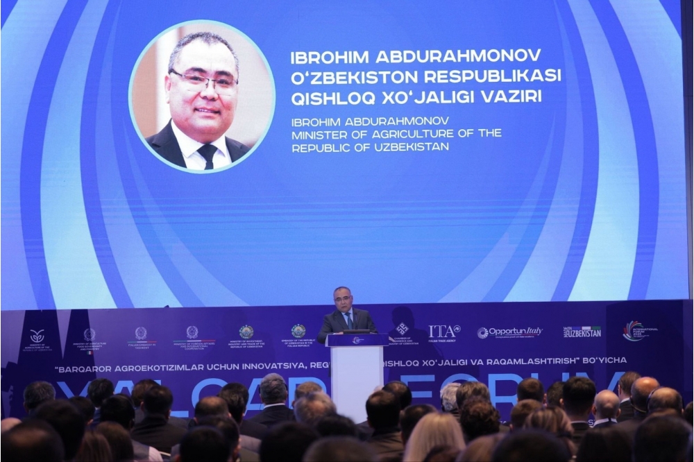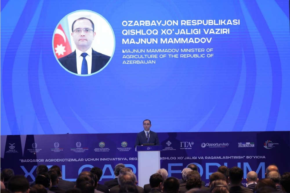 Özbəkistanın paytaxt Daşkənd şəhərində İtaliya, Mərkəzi Asiya ölkələri və Azərbaycanın iştirakı ilə "Dayanıqlı aqroekosistemlər üçün innovasiyalar, bərpaedici kənd təsərrüfatı və rəqəmsallaşma" mövzusunda aqrobiznes forumu başlayıb. Müxtəlif ölkələrdən yüksək səviyyəli rəhbər şəxslərin iştirak etdiyi beynəlxalq tədbirdə Azərbaycanı dövlət qurumları və iş adamlarından ibarət nümayəndə heyəti təmsil edir.