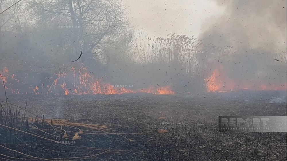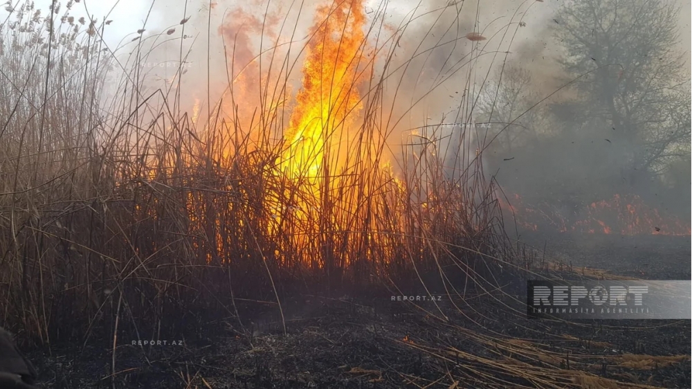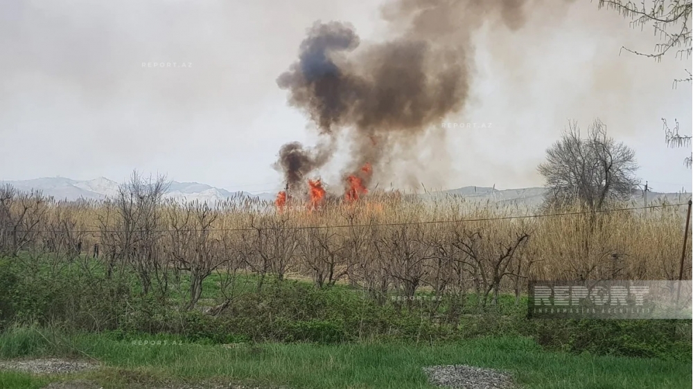 Göyçay rayonunun Çayarxı kəndi ərazisində qamışlıq və yabanı kolluq ərazidə yanğın olub.