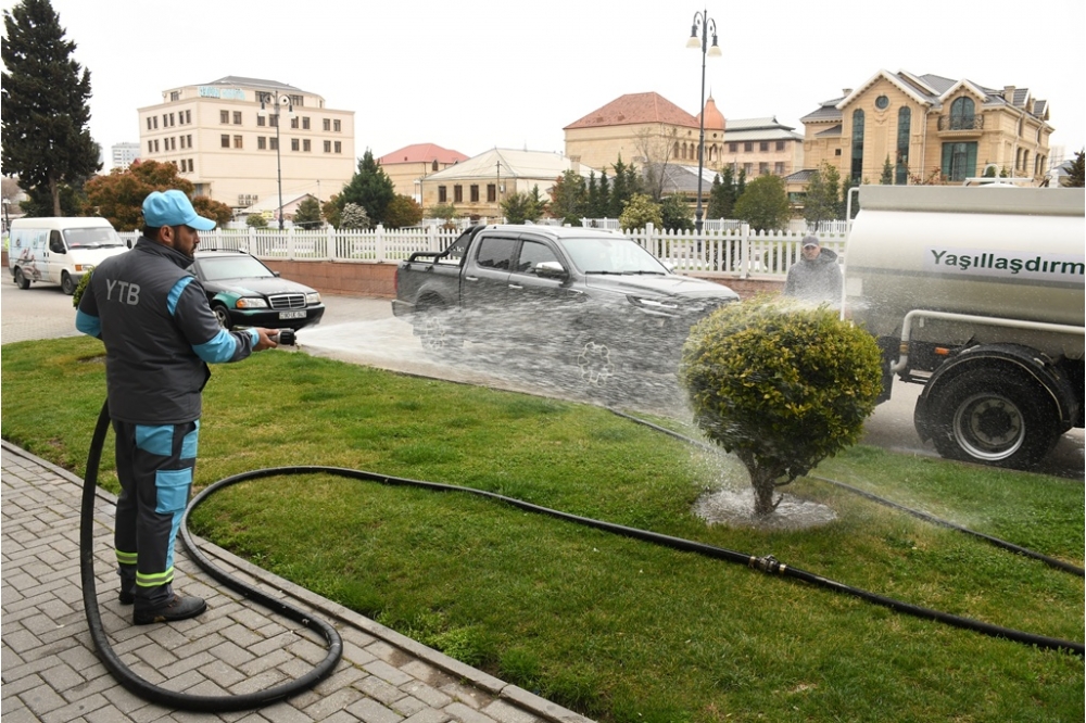 Eyni zamanda Bakı Şəhər Yaşıllaşdırma Təsərrüfatı Birliyi əməkdaşları tərəfindən yol və prospektlərin kənarlarındakı ağacların və yaşıllıqların üzərinə yığılan toz-torpağın yuyulması, onlara aqrotexniki qulluq göstərilməsi də həyata keçirilib, zədələnən budaqları budanıb. Eyni zamanda, şəhər sakinləri və paytaxtımızın qonaqlarının zövqünü oxşayacaq rəngbərəng güllər əkilib, müxtəlif rəngli güllərdən kompozisiyalar yaradılıb.