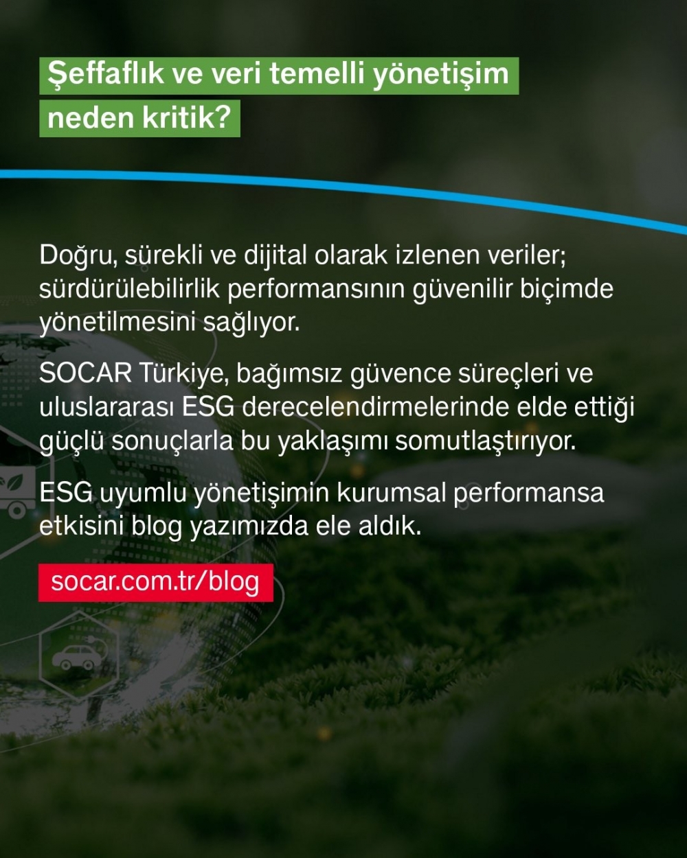ESG performansının etibarlı şəkildə inkişaf etdirilməsi yalnız düzgün və davamlı məlumat izləmə ilə mümkündür. “SOCAR Türkiyə” rəqəmsal məlumat toplama sistemləri vasitəsilə ESG performansını izləyir, ölçür və müstəqil qurumlarla paylaşır, bu da davamlılıq göstəricilərinin həm ölçülməsini, həm də davamlı yaxşılaşdırılmasını təmin edir.