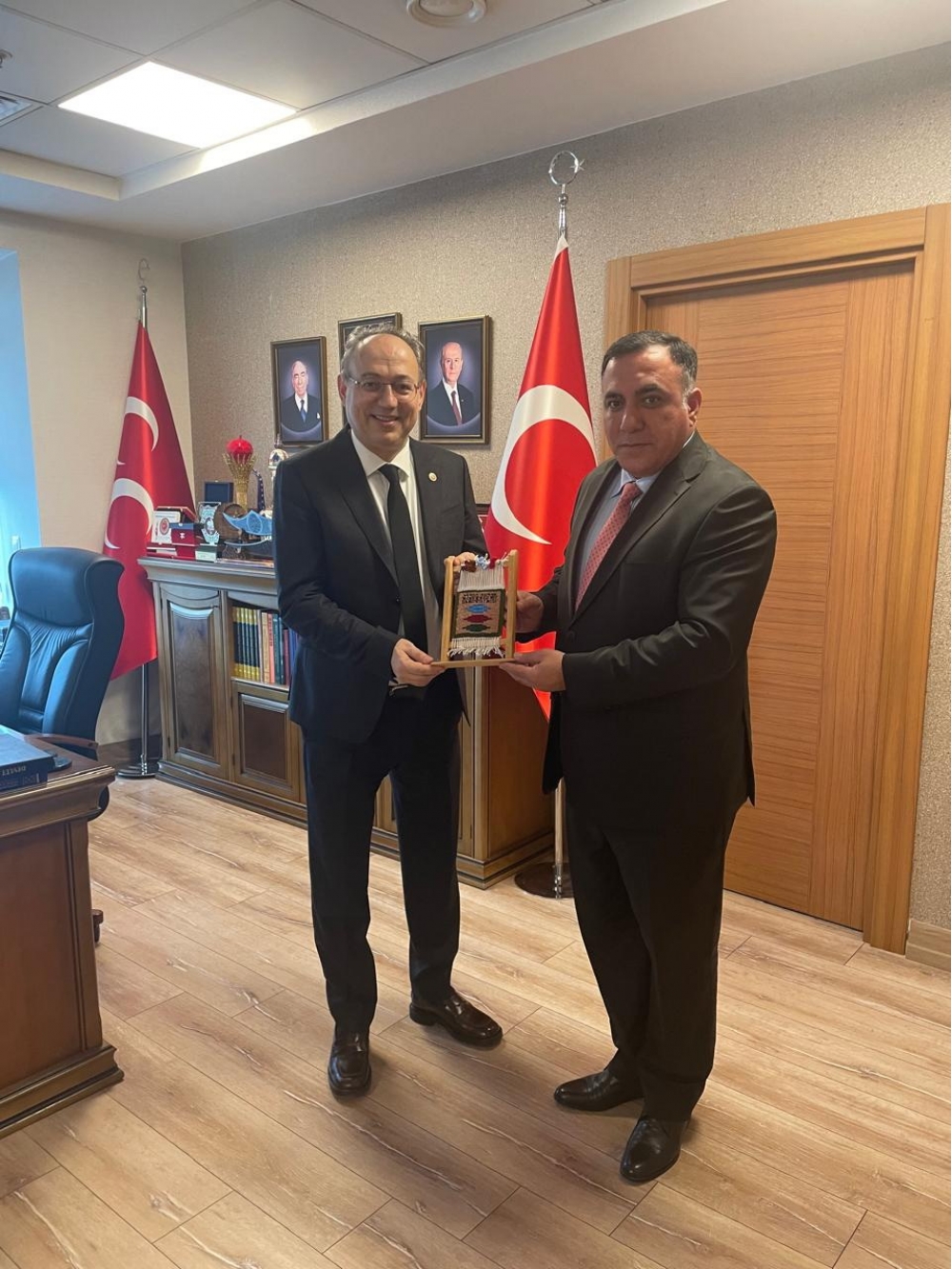 “İki sahil” xəbər verir ki, birlik sədri Türkiyə Milliyyəçi Hərəkat Partiyasının mərkəzi qərərgahında olub. Türk dünyası ilə bağlı araşdırmaları ilə tanınan MHP sədrinin Türk Dünyası ilə əlaqələr üzrə müavini, TBMM-nin təhsil komisiyasın sədr müavini, professor İlyas Topsakal ilə görüşdə iki dövlətin vətəndaş cəmiyyəti mənsubları arasında əlaqələrin qurulmasının vacibliyi qeyd edilib.